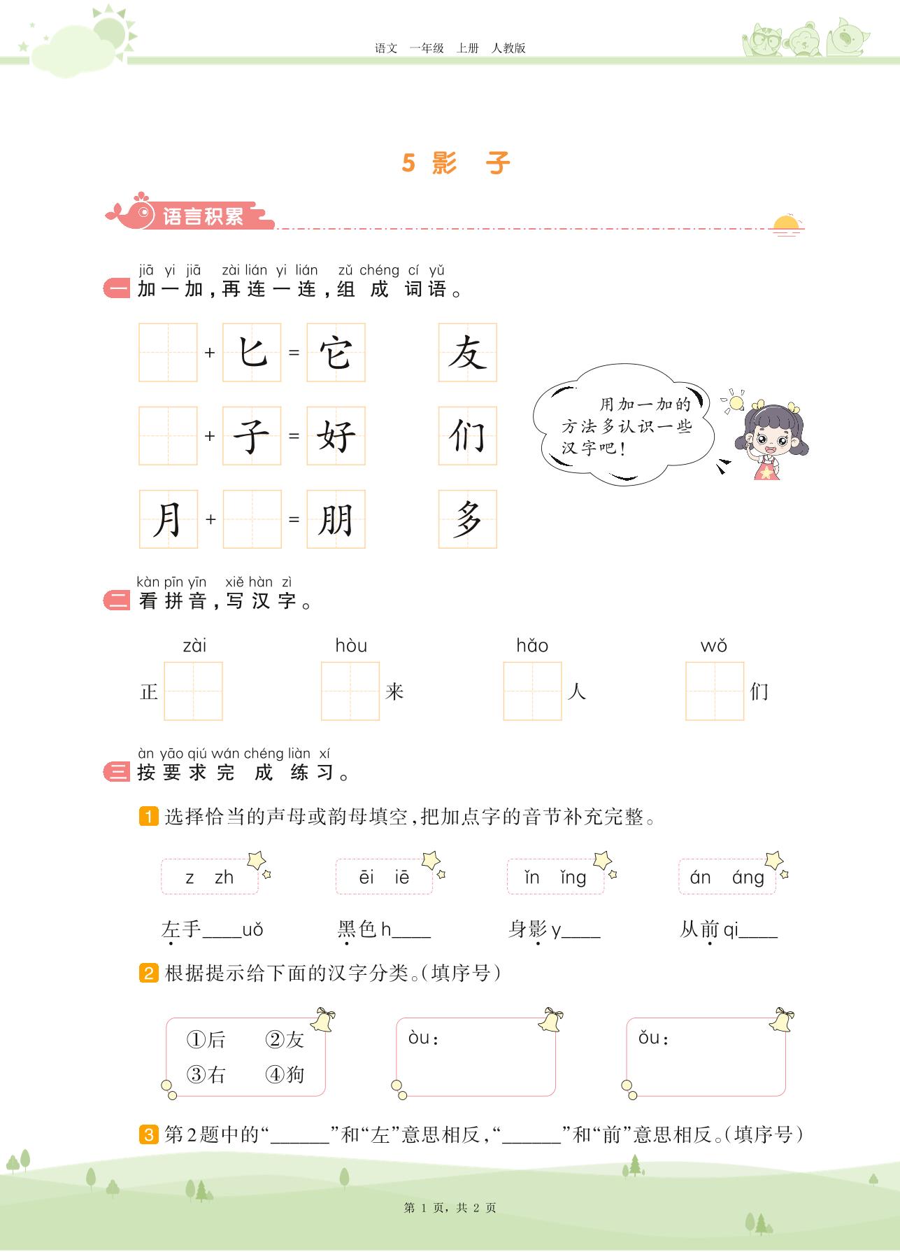2020上册一年级语文人教版 第六单元 课文——5 影子