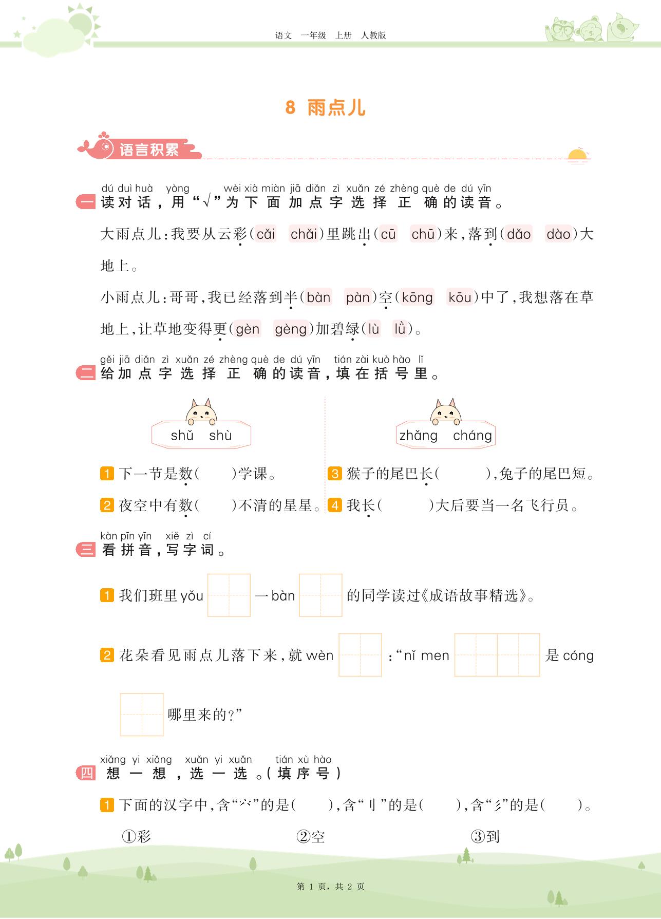 2020上册一年级语文人教版 第六单元 课文——8 雨点儿