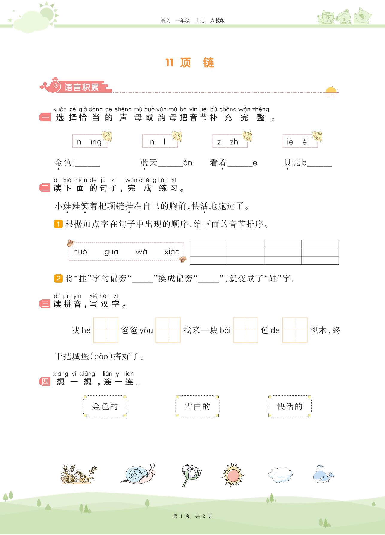 2020上册一年级语文人教版 第七单元 课文——11 项链