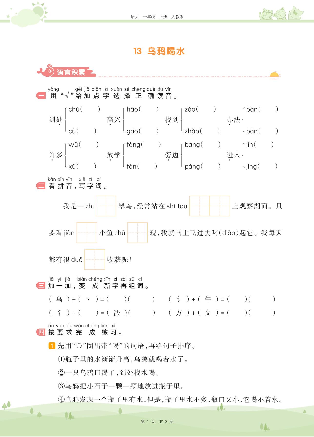 2020上册一年级语文人教版 第八单元 课文——13 乌鸦喝水