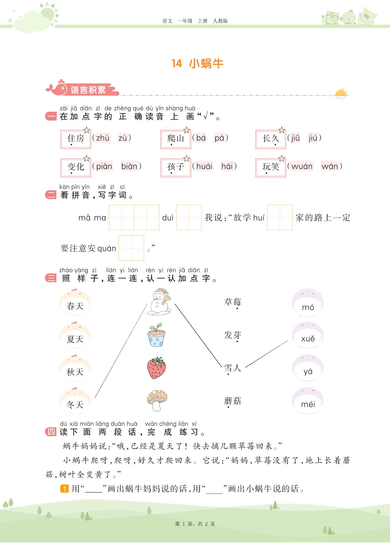 2020上册一年级语文人教版 第八单元 课文——14 小蜗牛