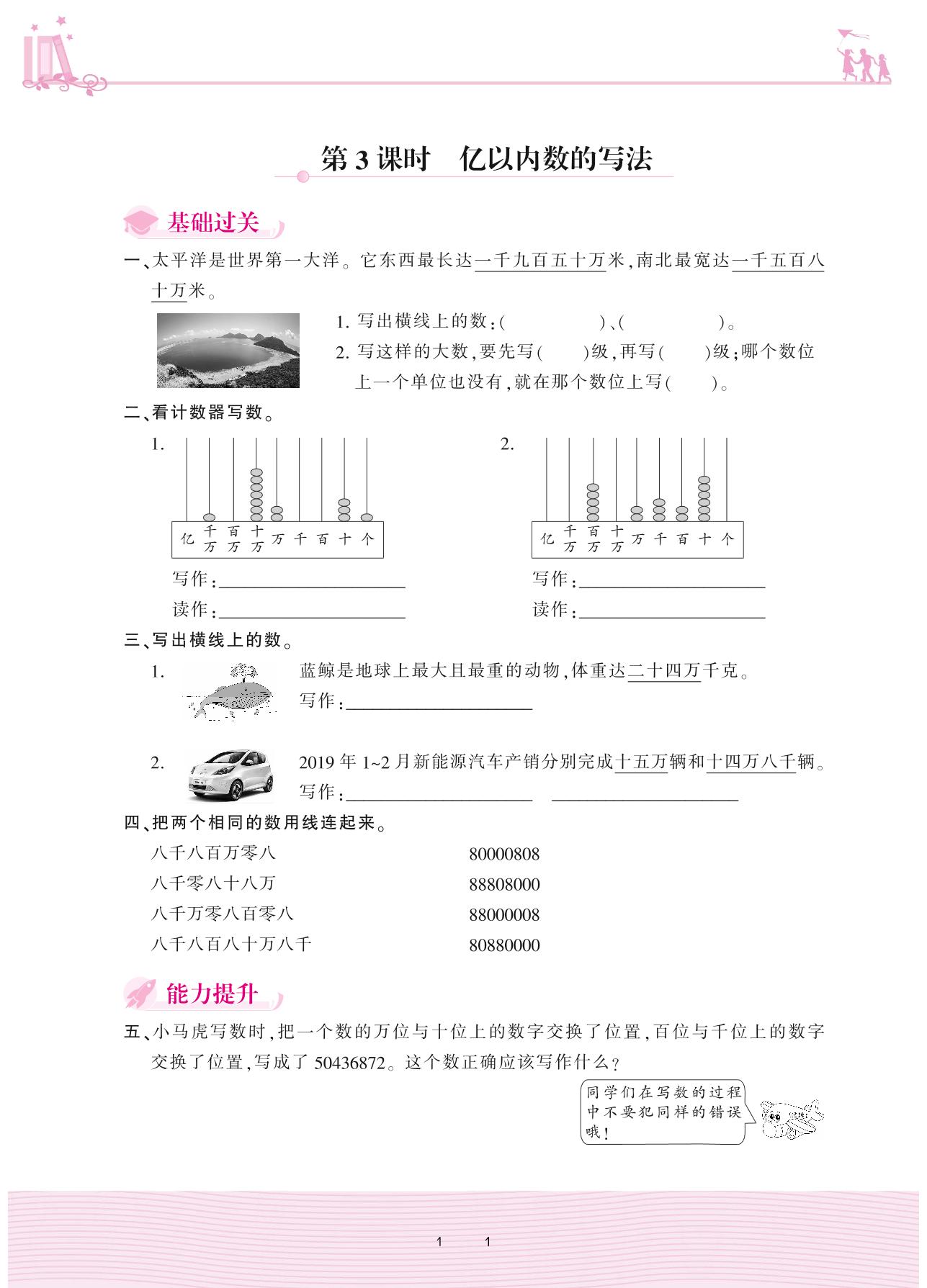 2020上册四年级数学人教版 1 大数的认识——第3课时 亿以内数的写法