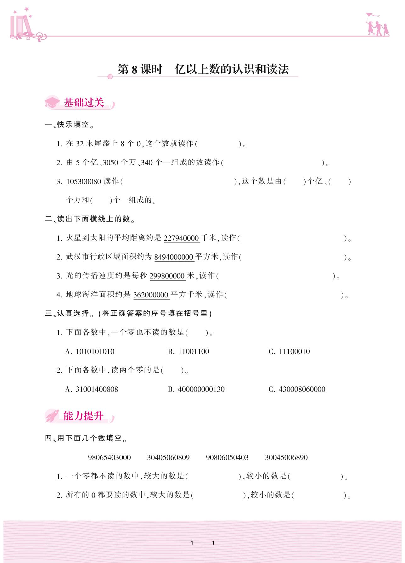 2020上册四年级数学人教版 1 大数的认识——第8课时 亿以上数的认识和读法