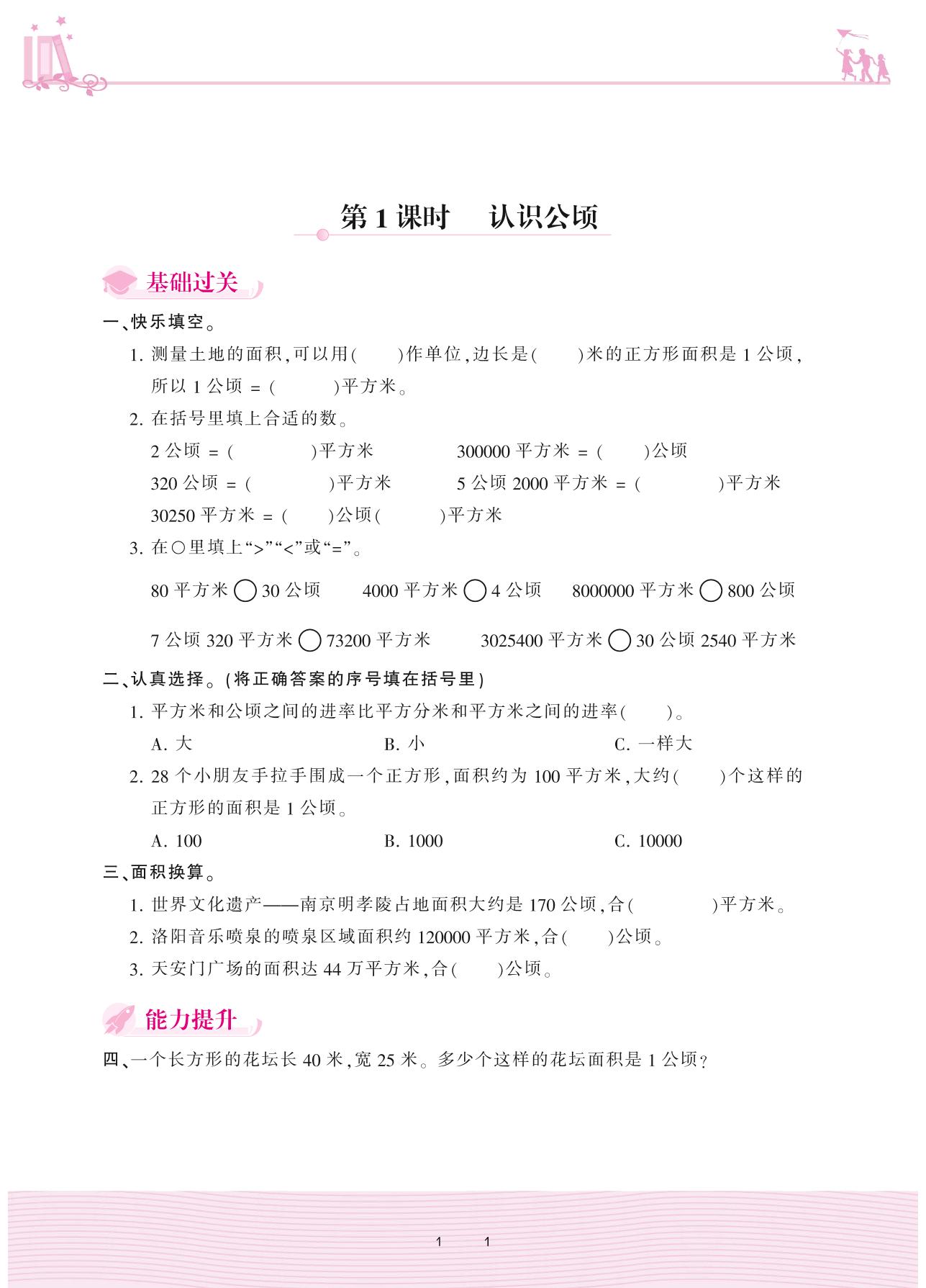 2020上册四年级数学人教版 2 公顷和平方千米——第1课时 认识公顷