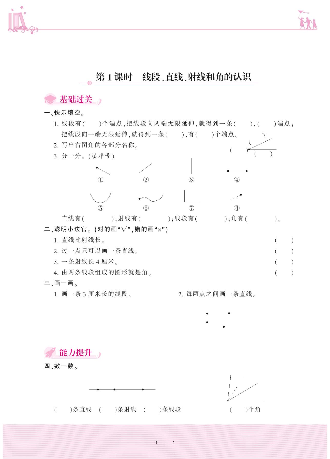 2020上册四年级数学人教版 3 角的度量——第1课时 线段、直线、射线和角的认识