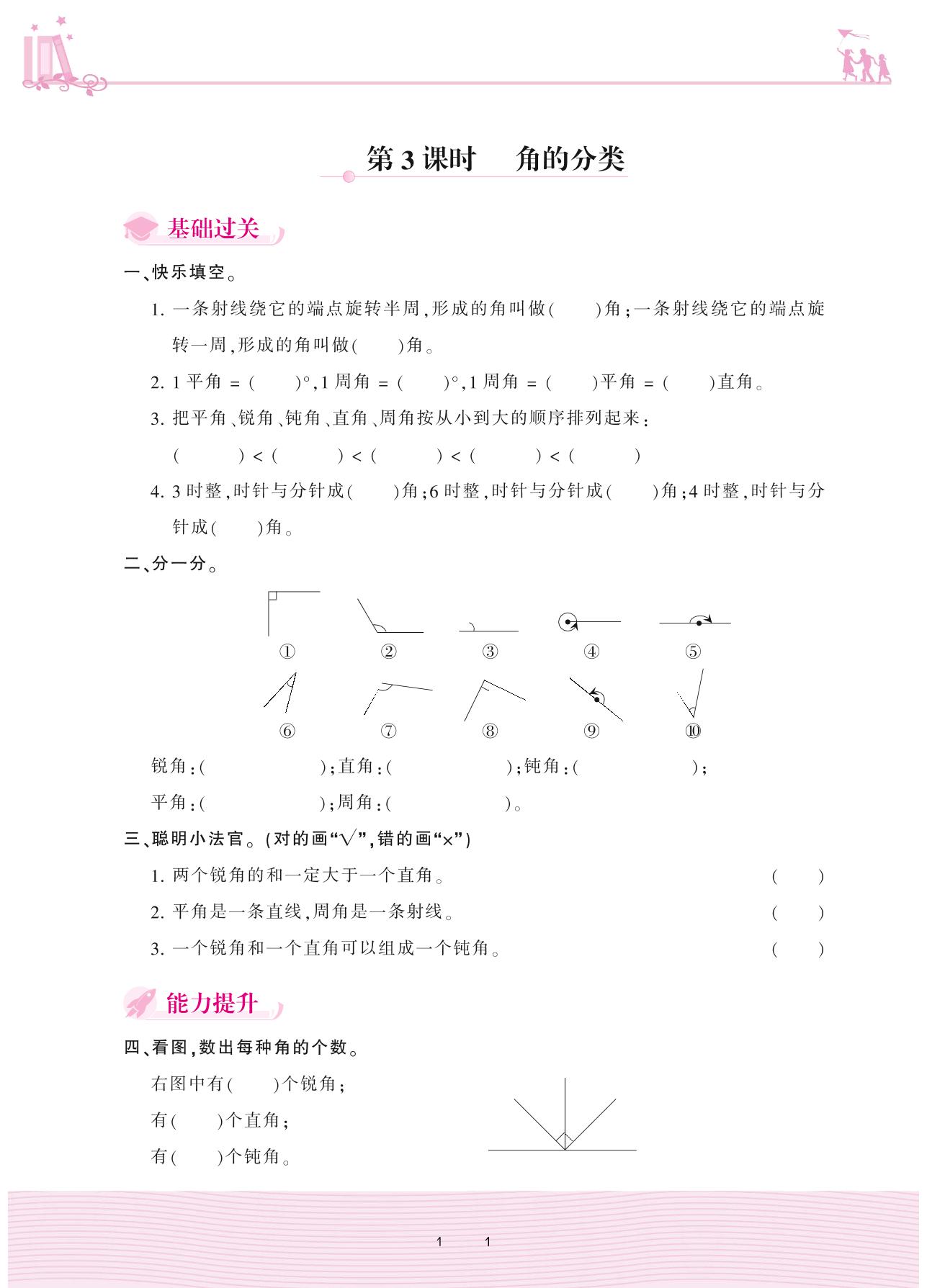 2020上册四年级数学人教版 3 角的度量——第3课时 角的分类