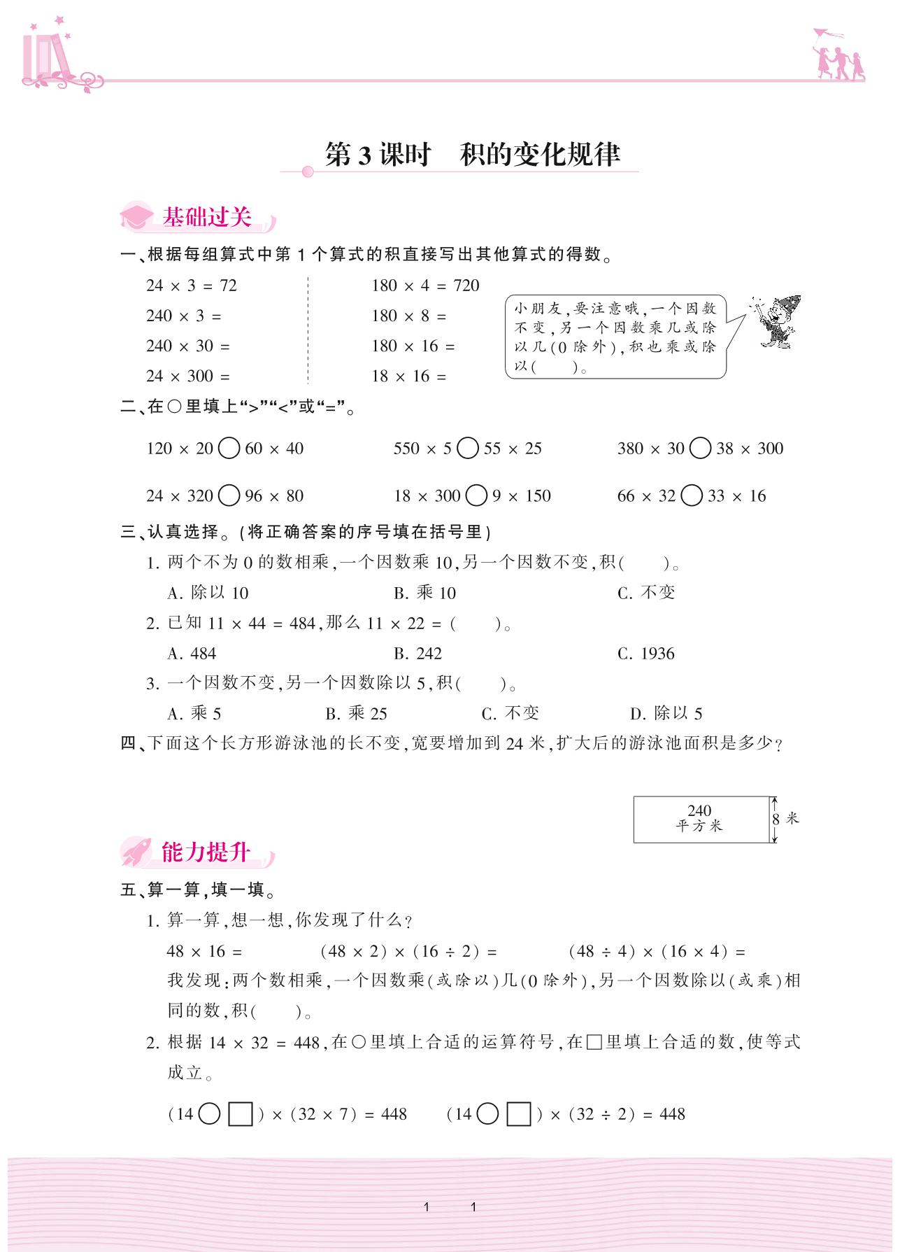 2020上册四年级数学人教版 4 三位数乘两位数——第3课时 积的变化规律