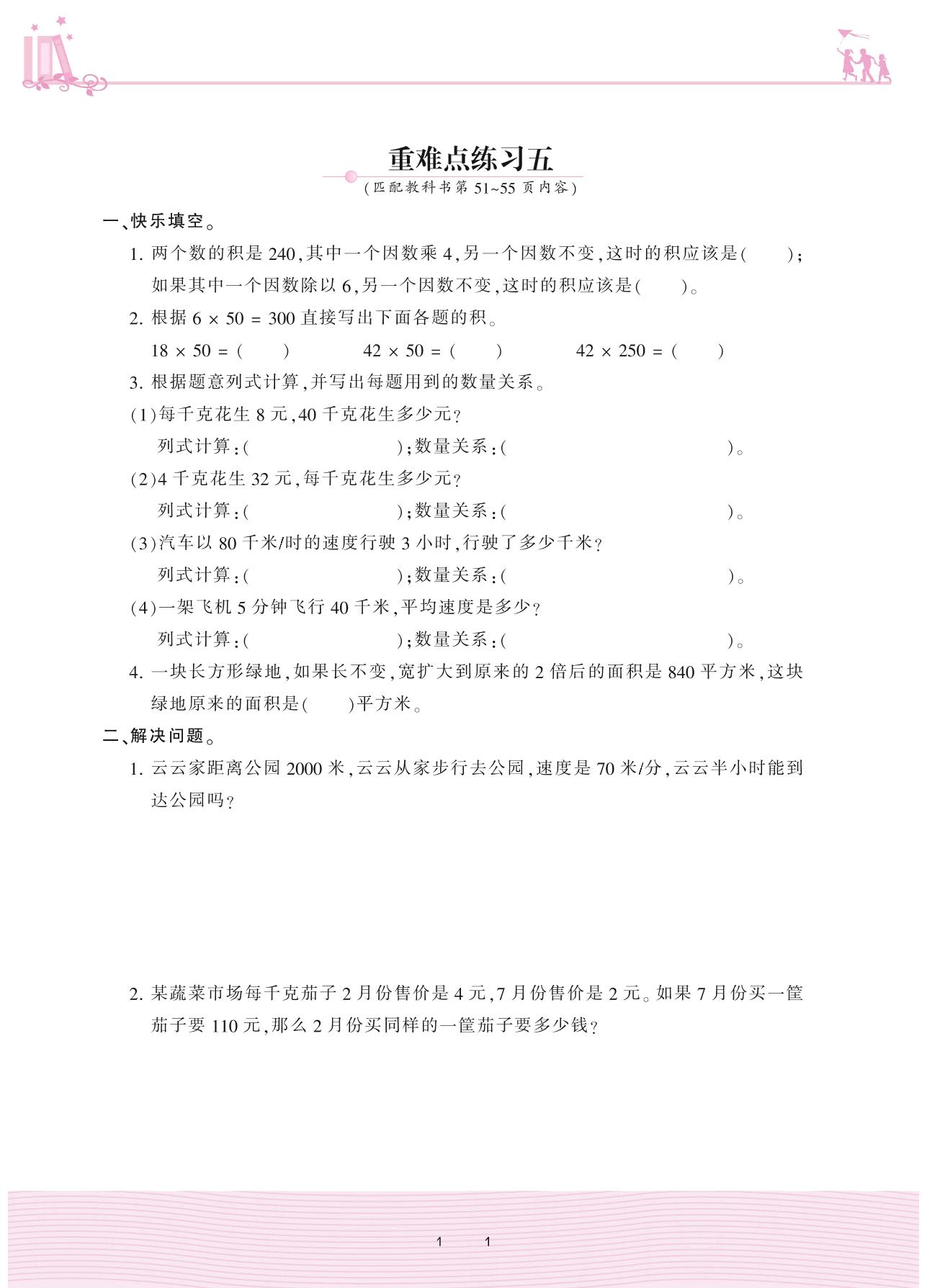 2020上册四年级数学人教版 4 三位数乘两位数——重难点练习五
