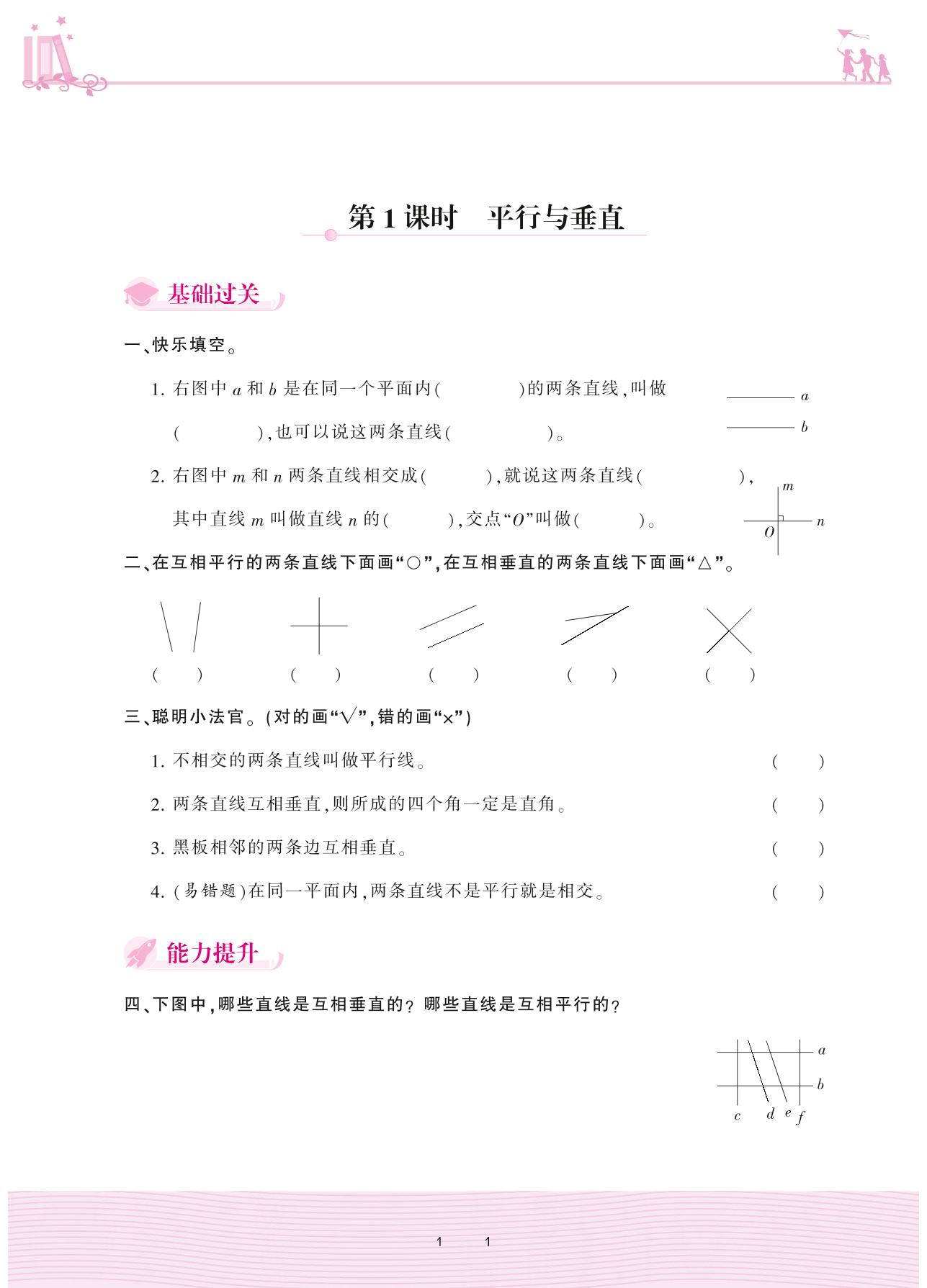 2020上册四年级数学人教版 5 平行四边形和梯形——第1课时 平行与垂直