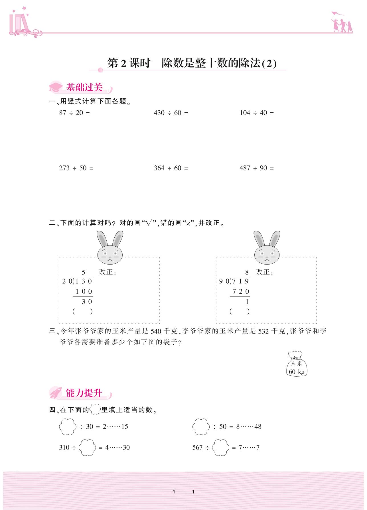 2020上册四年级数学人教版 6 除数是两位数的除法 2. 笔算除法——第2课时 除数是整十数的除法(2)