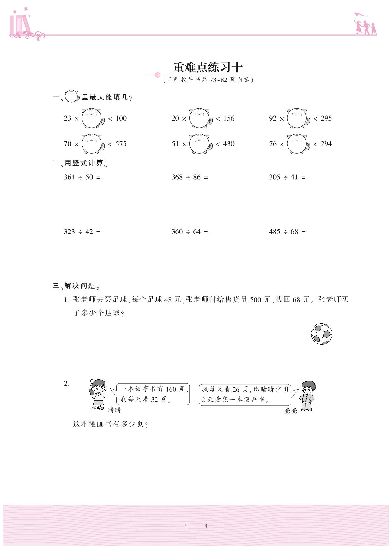 2020上册四年级数学人教版 6 除数是两位数的除法——重难点练习十