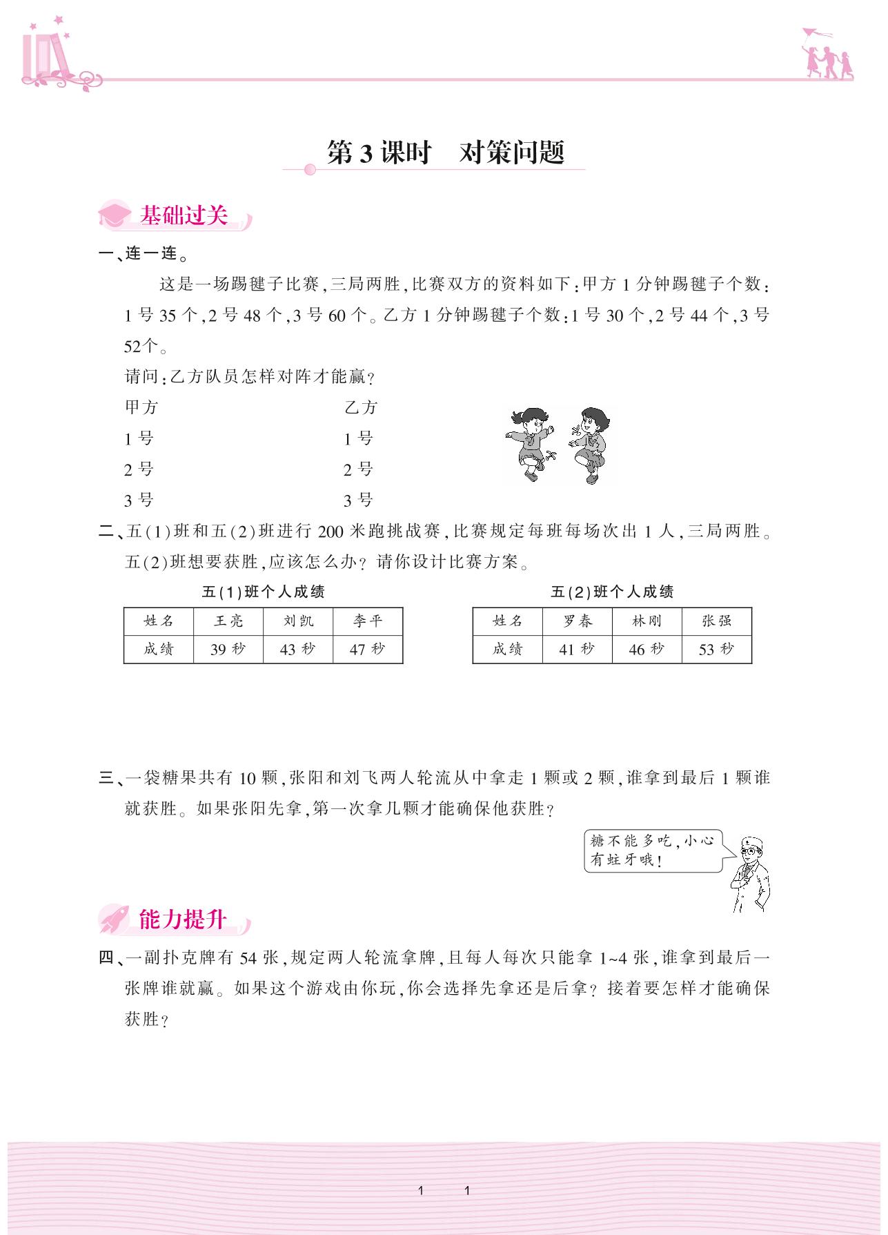 2020上册四年级数学人教版 8 数学广角——优化——第3课时 对策问题