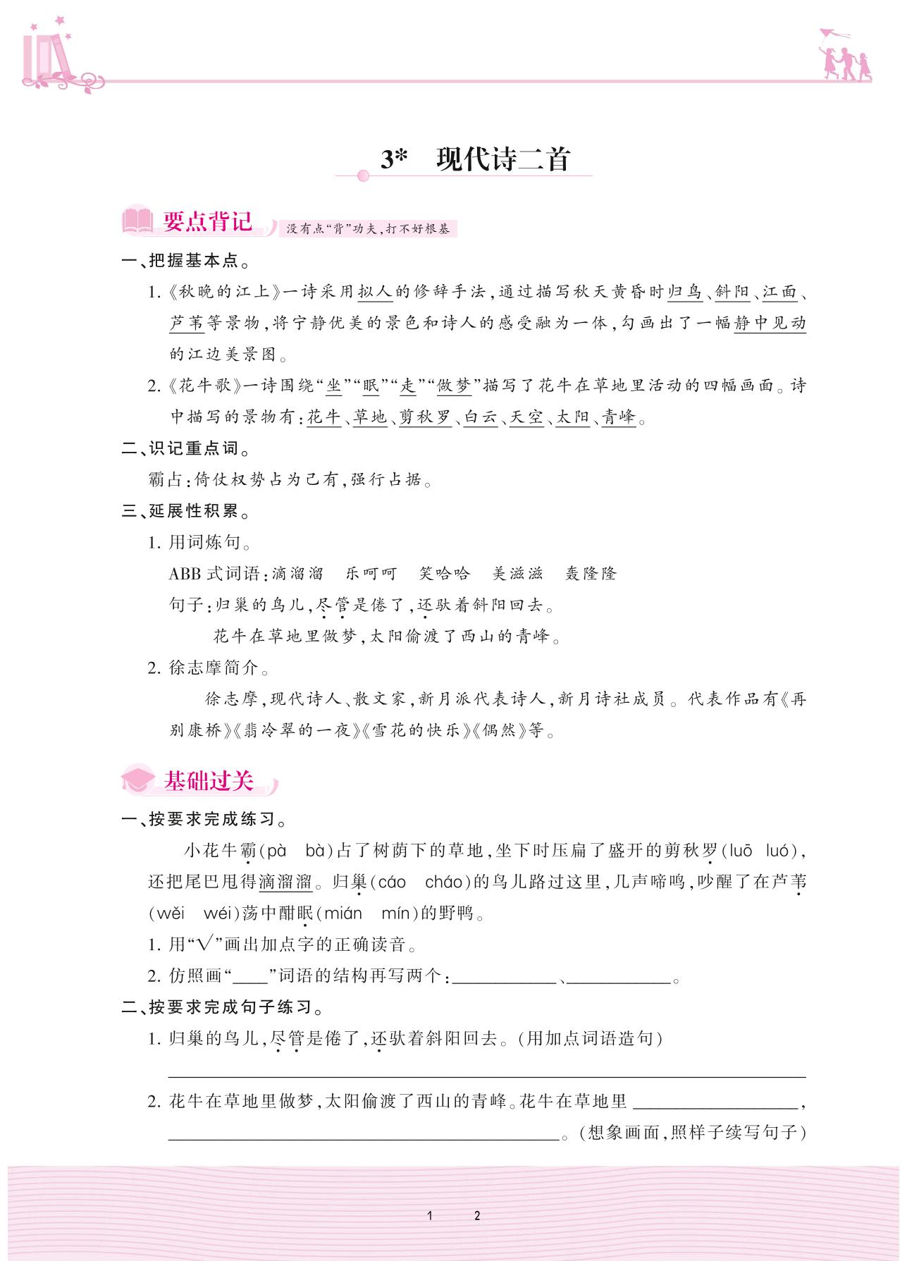 2020上册四年级语文人教版 第一单元——3 现代诗二首