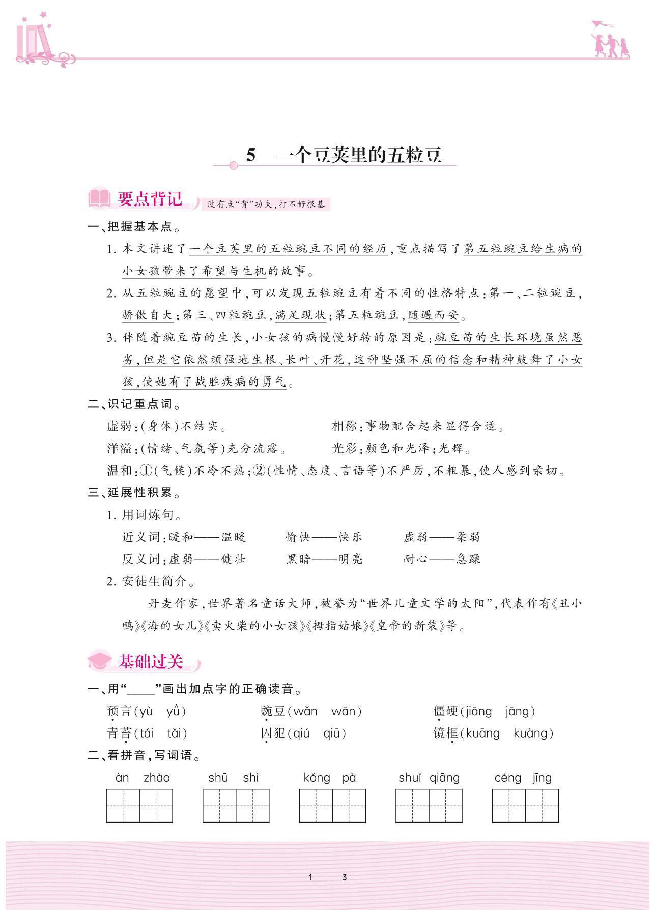 2020上册四年级语文人教版 第二单元——5 一个豆荚里的五粒豆
