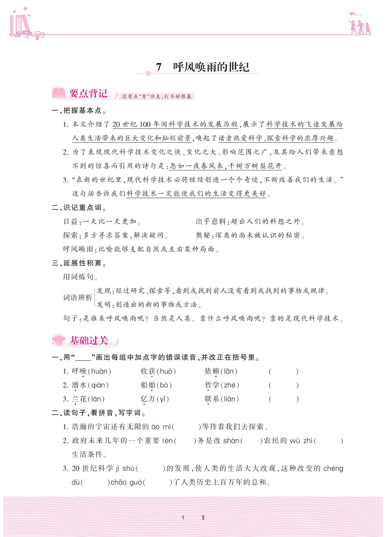 2020上册四年级语文人教版 第二单元——7 呼风唤雨的世纪