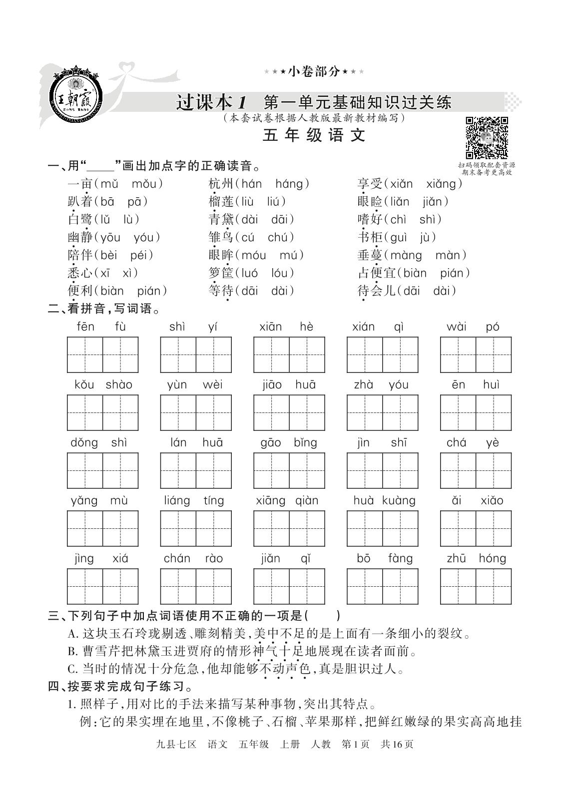 王朝霞期末过课本五年级上册语文(人教版)【0】