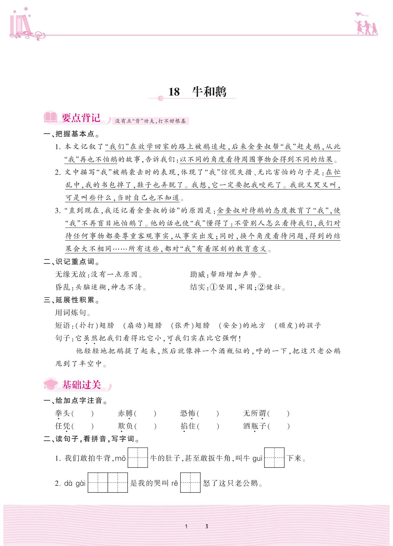 2020上册四年级语文人教版 第六单元——18 牛和鹅