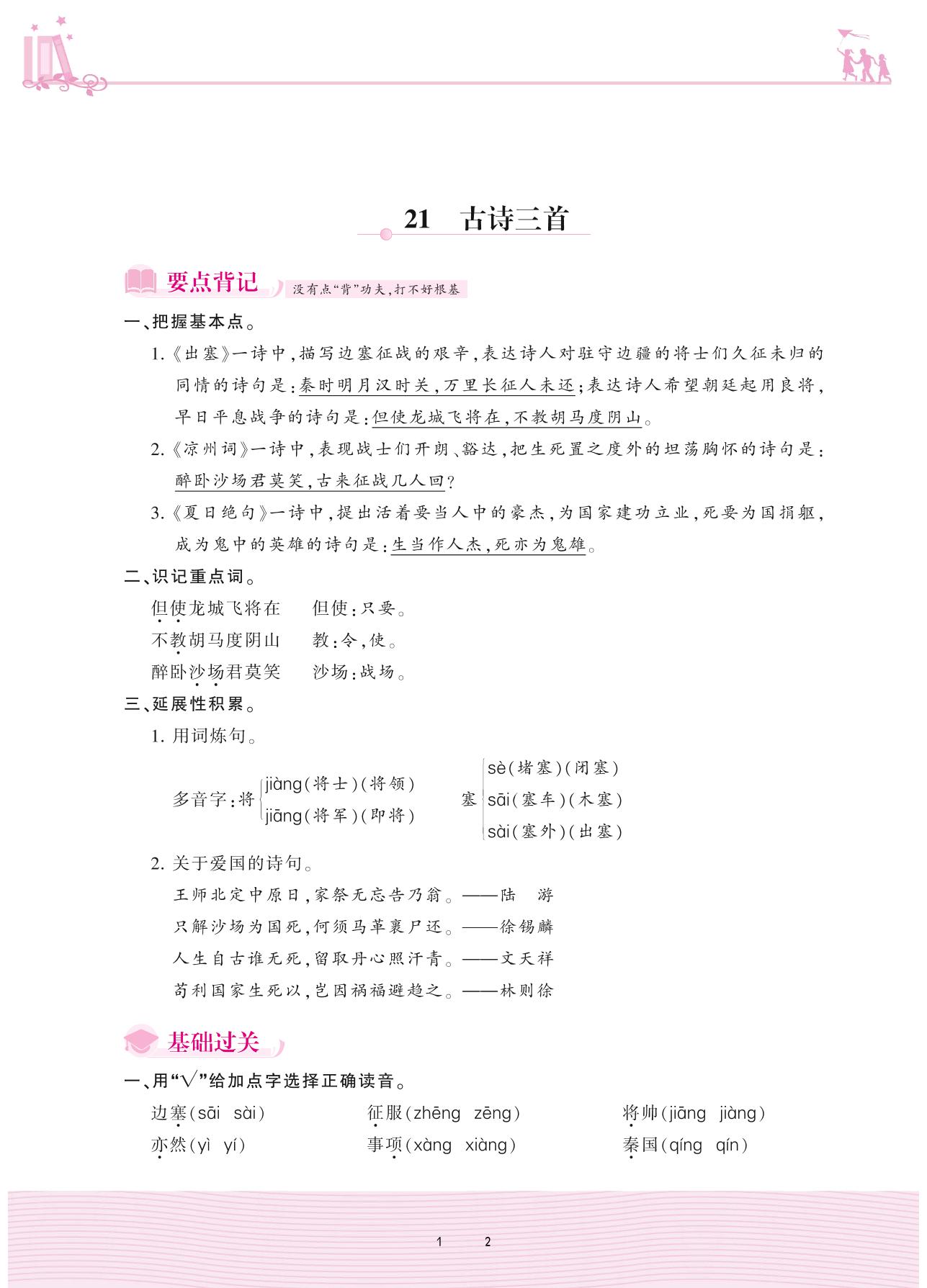 2020上册四年级语文人教版 第七单元——21 古诗三首