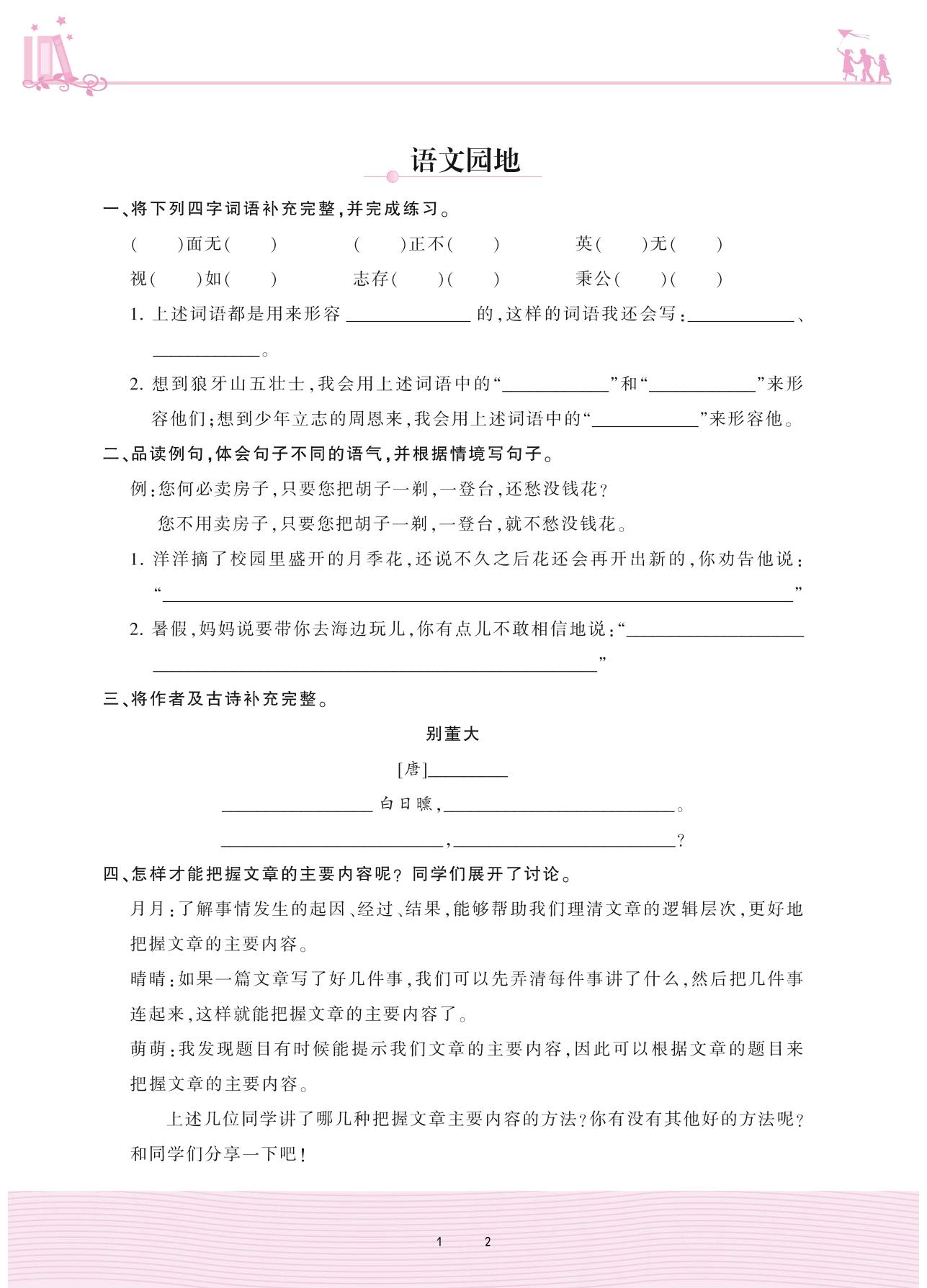 2020上册四年级语文人教版 第七单元——语文园地