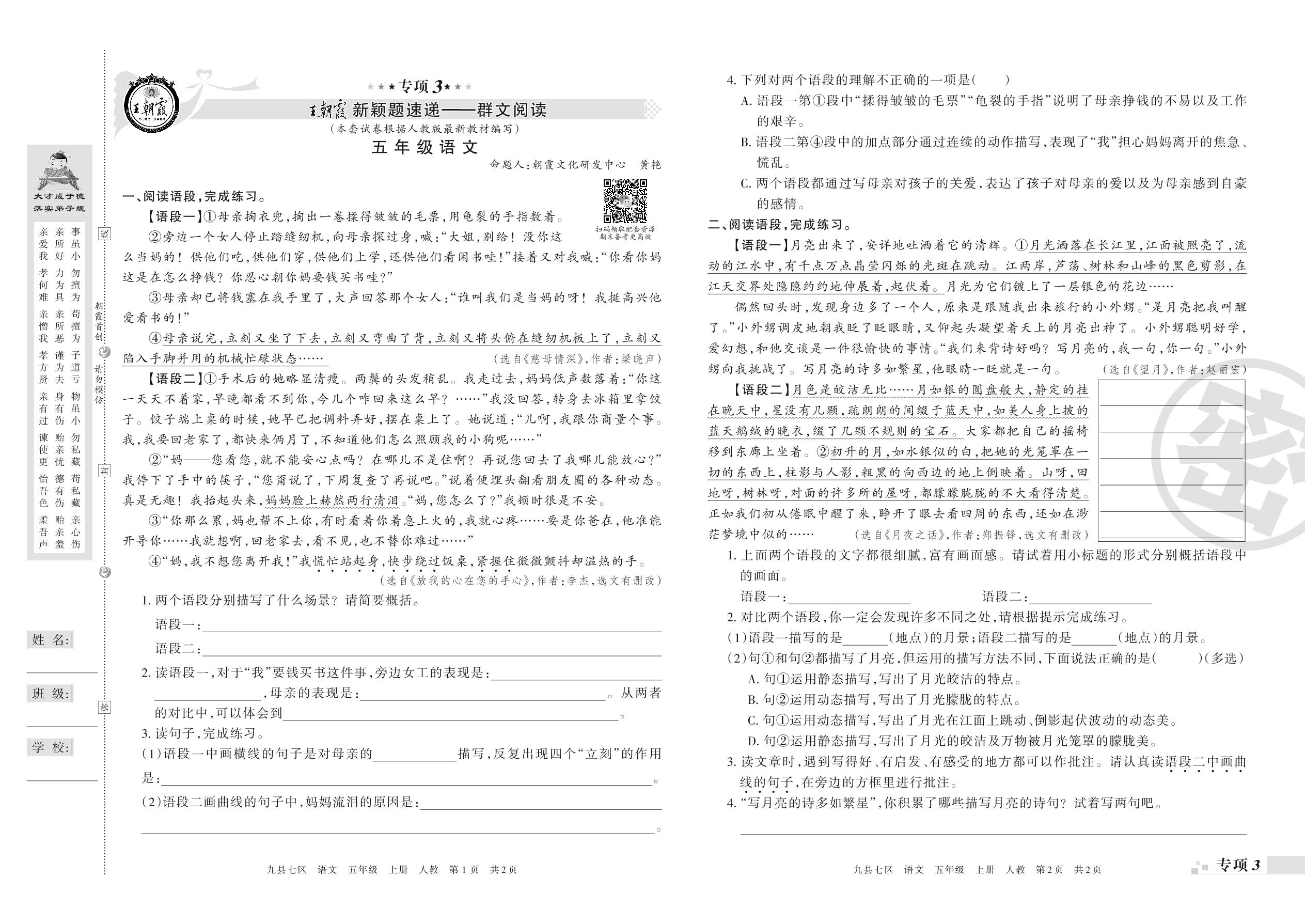 王朝霞期末专项卷——群文阅读、古诗文阅读五年级上册语文(人教版)_R210801190652【0】