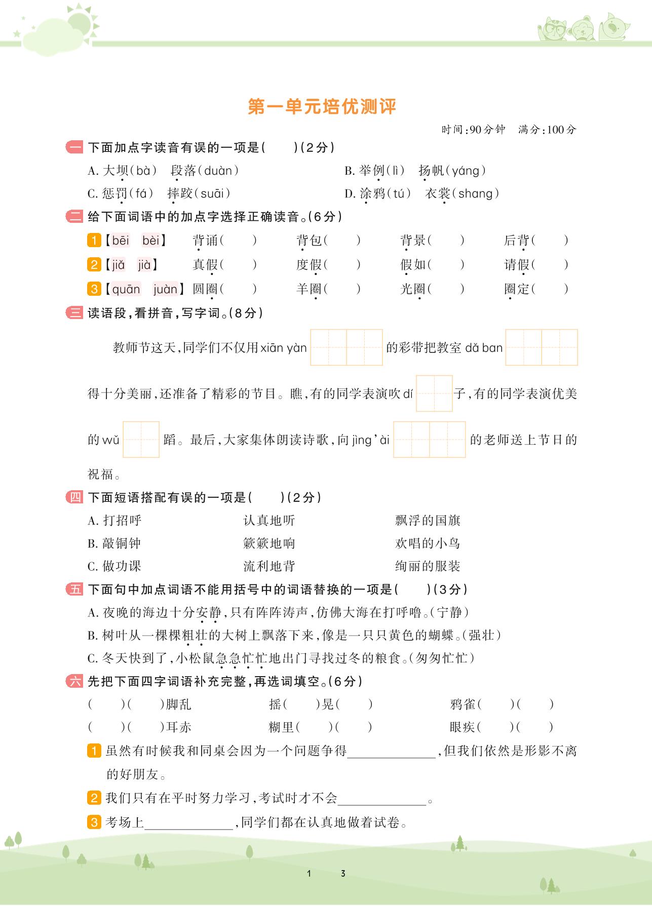 三年级语文人教版上册单元卷