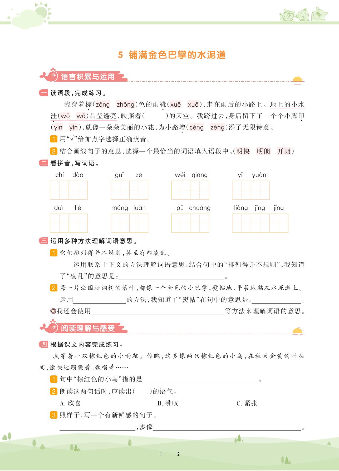 2020上册三年级语文人教版 第二单元——5 铺满金色巴掌的水泥道