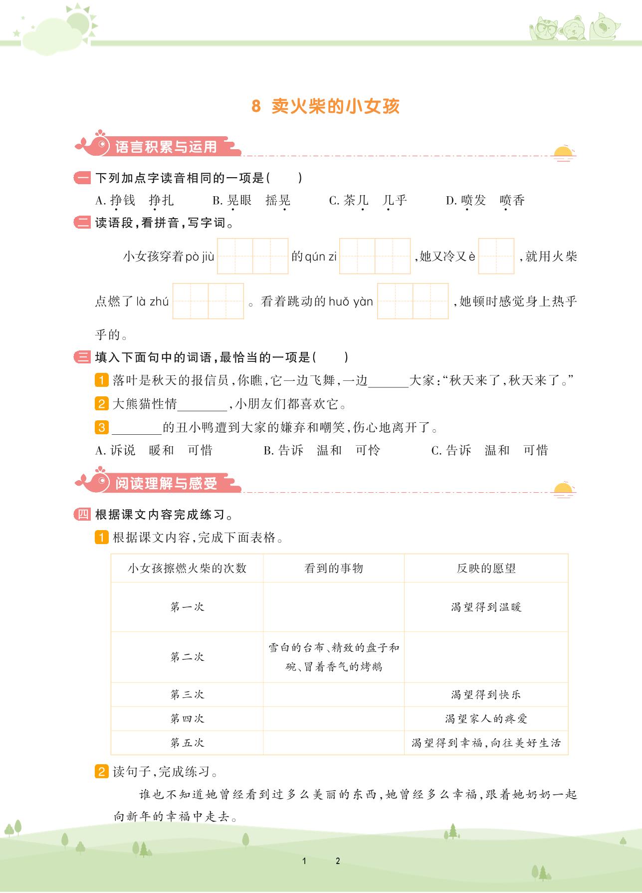2020上册三年级语文人教版 第三单元——8 卖火柴的小女孩