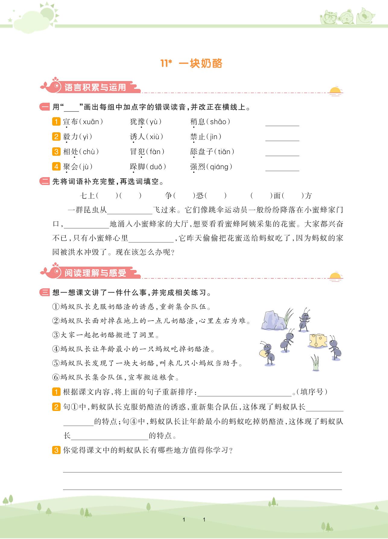 2020上册三年级语文人教版 第三单元——11 一块奶酪