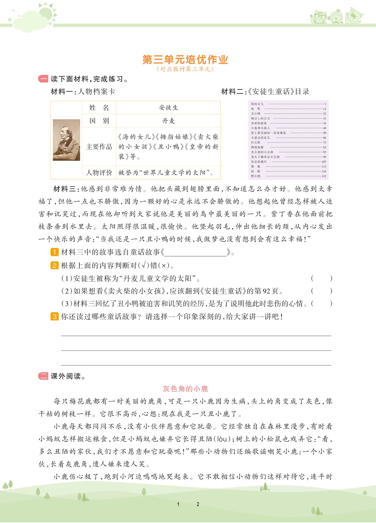 2020上册三年级语文人教版 第三单元培优作业
