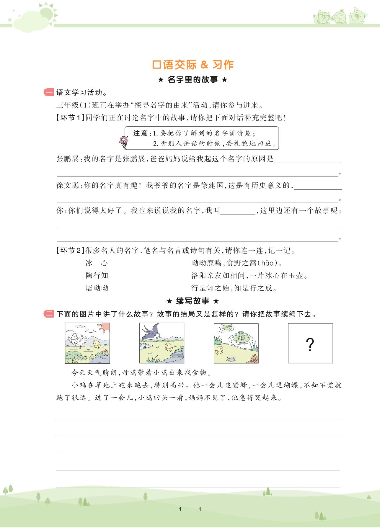 2020上册三年级语文人教版 第四单元——口语交际&习作