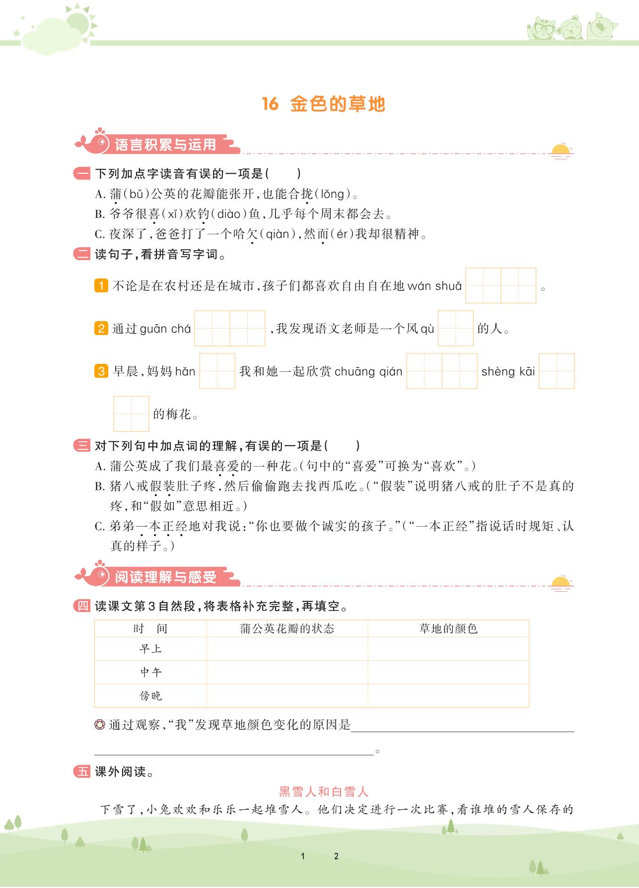 2020上册三年级语文人教版 第五单元——16 金色的草地