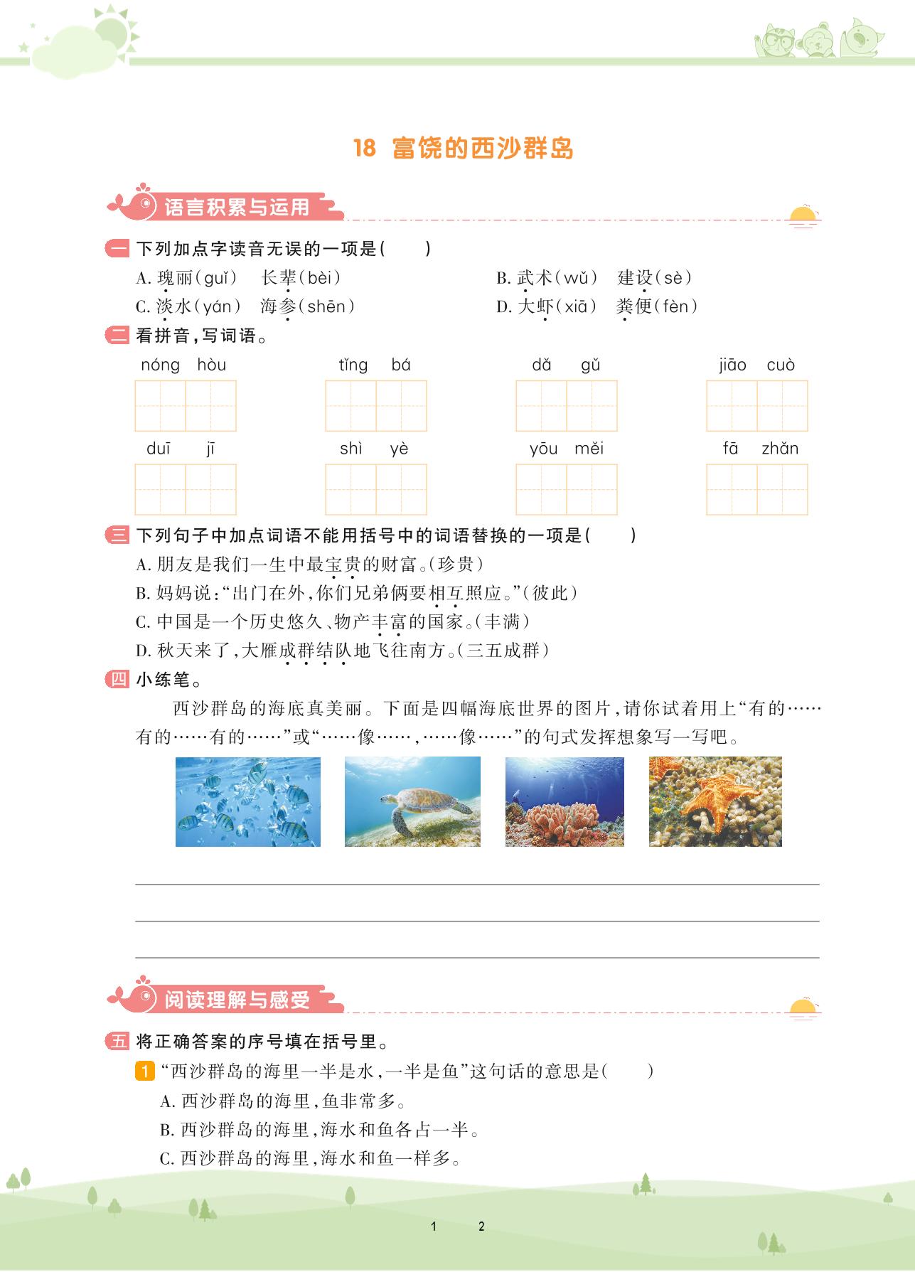 2020上册三年级语文人教版 第六单元——18 富饶的西沙群岛