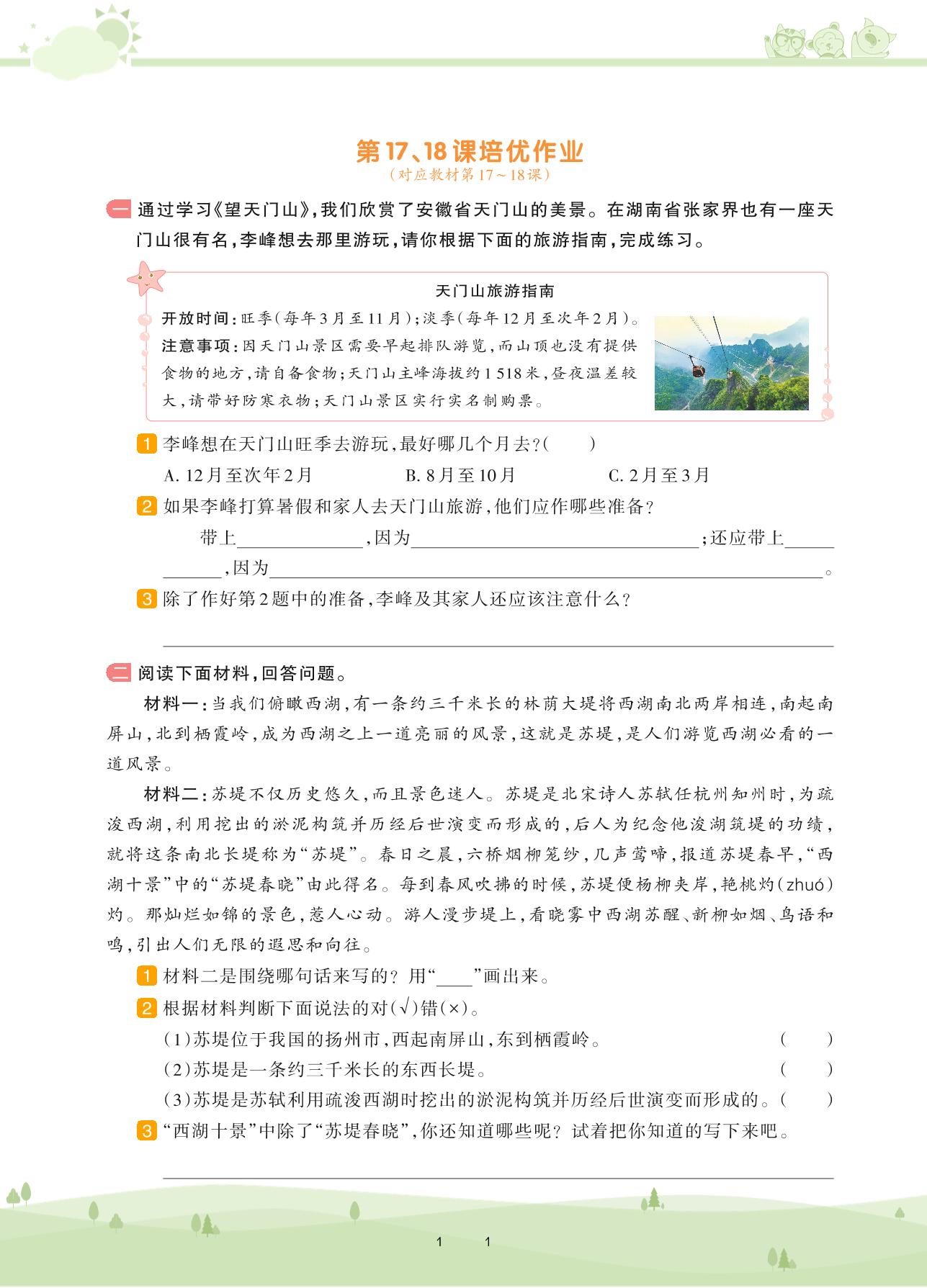 2020上册三年级语文人教版 第六单元——第17、18课培优作业
