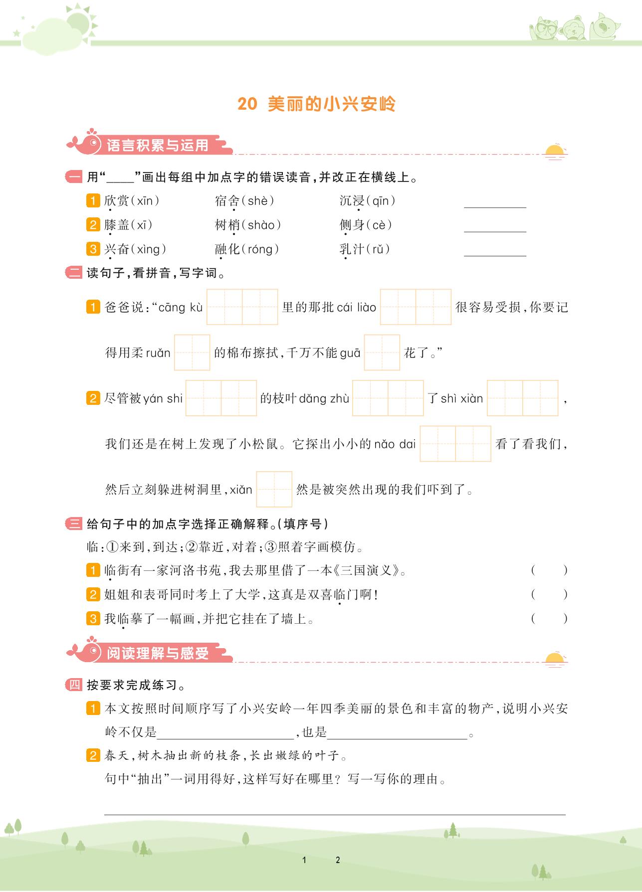 2020上册三年级语文人教版 第六单元——20 美丽的小兴安岭