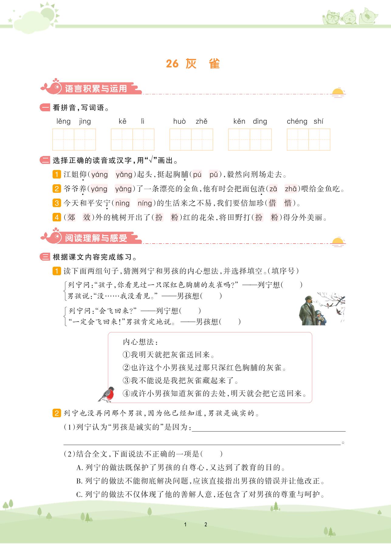2020上册三年级语文人教版 第八单元——26 灰雀