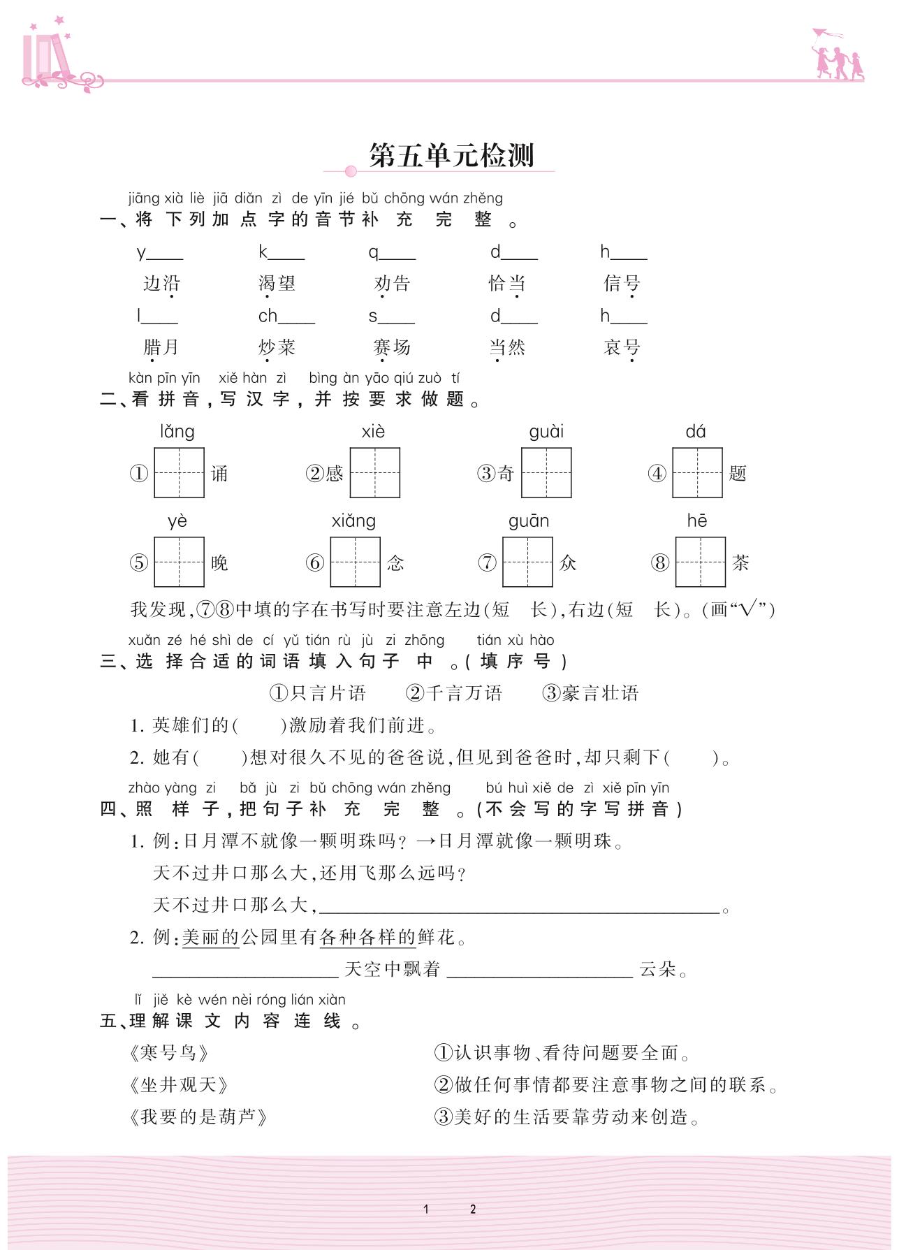 2020上册二年级语文人教版 第五单元检测