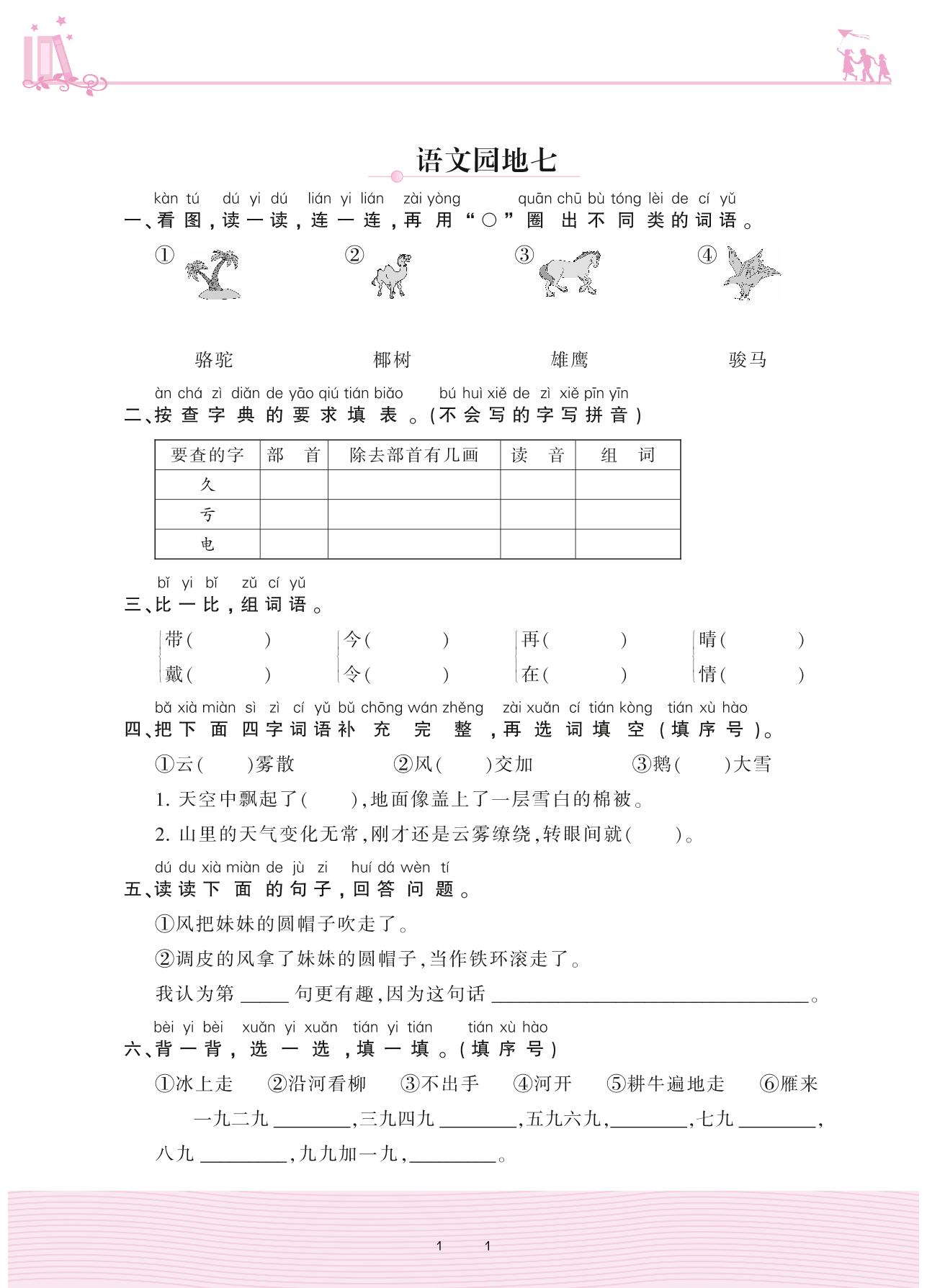 2020上册二年级语文人教版 第七单元 课文——语文园地七