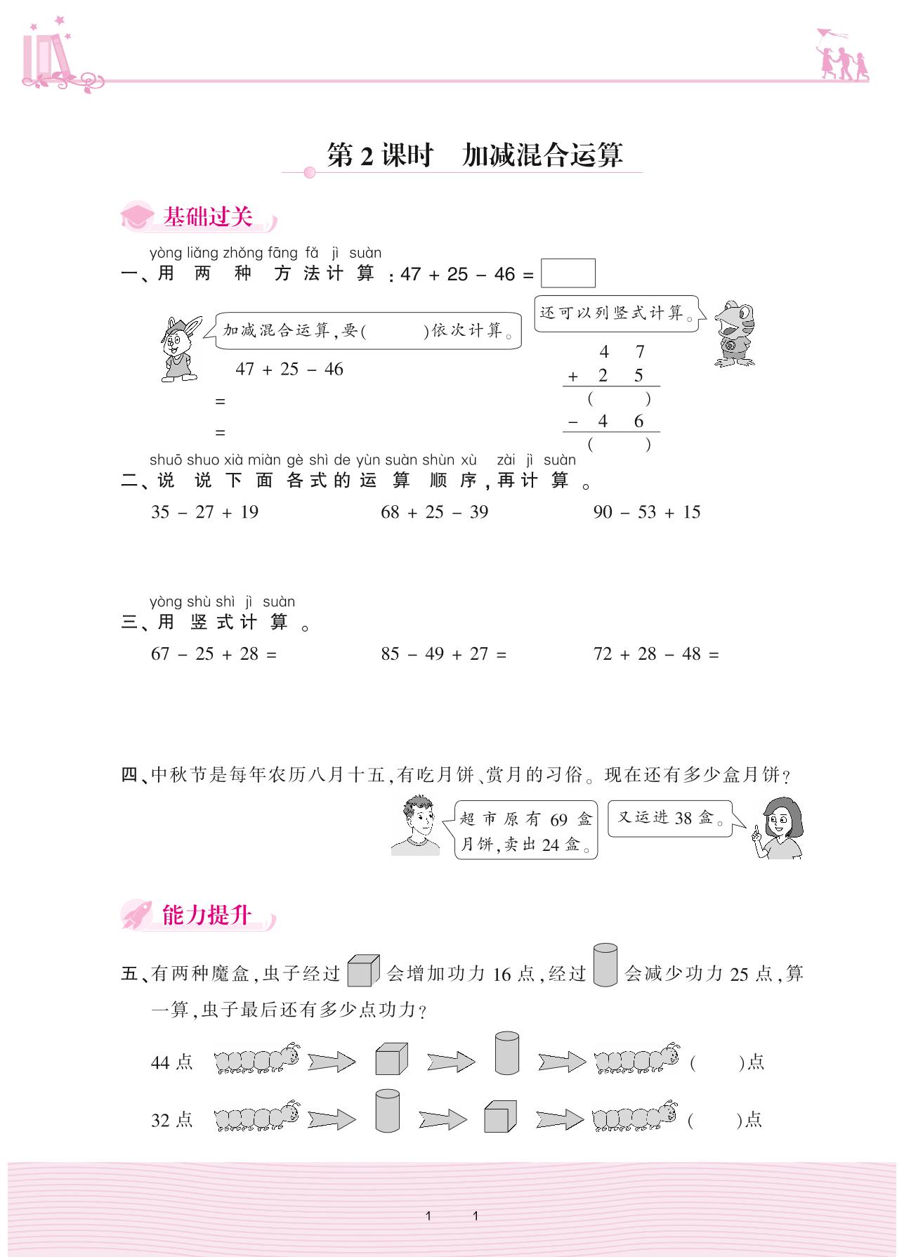 2020上册二年级数学冀教版 二 加减混合运算——第2课时 加减混合运算