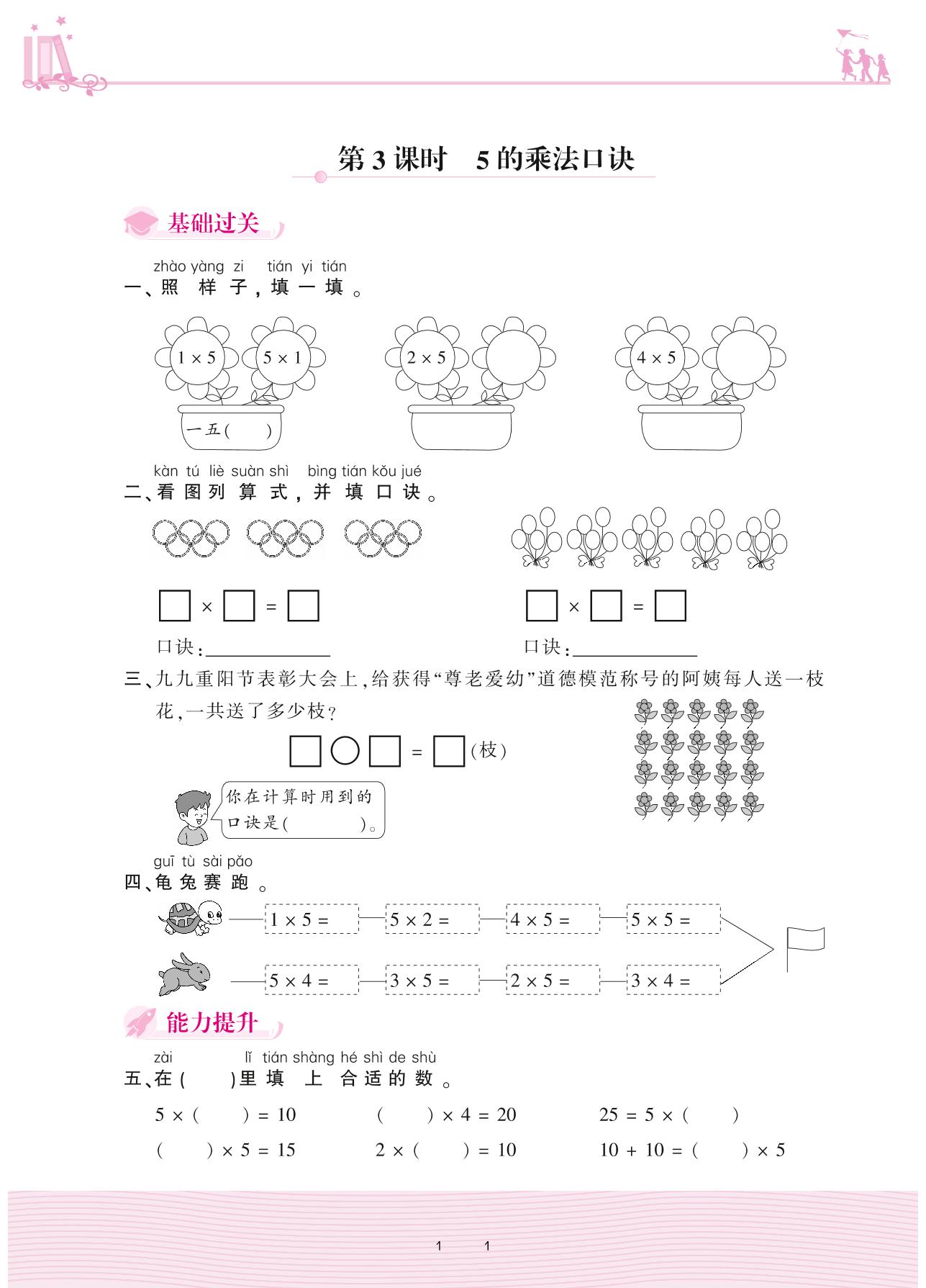 2020上册二年级数学冀教版 三 表内乘法(一)2. 2~6的乘法口诀——第3课时 5的乘法口诀