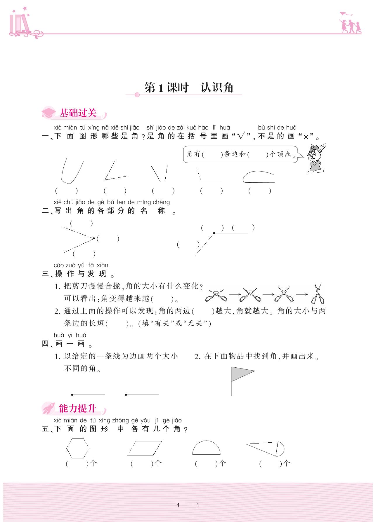 2020上册二年级数学冀教版 四 角的认识——第1课时 认识角