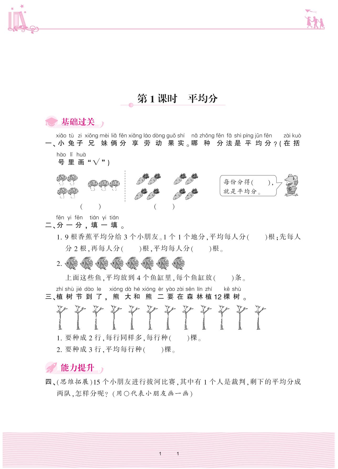2020上册二年级数学冀教版 五 表内除法(一)1. 认识除法——第1课时 平均分