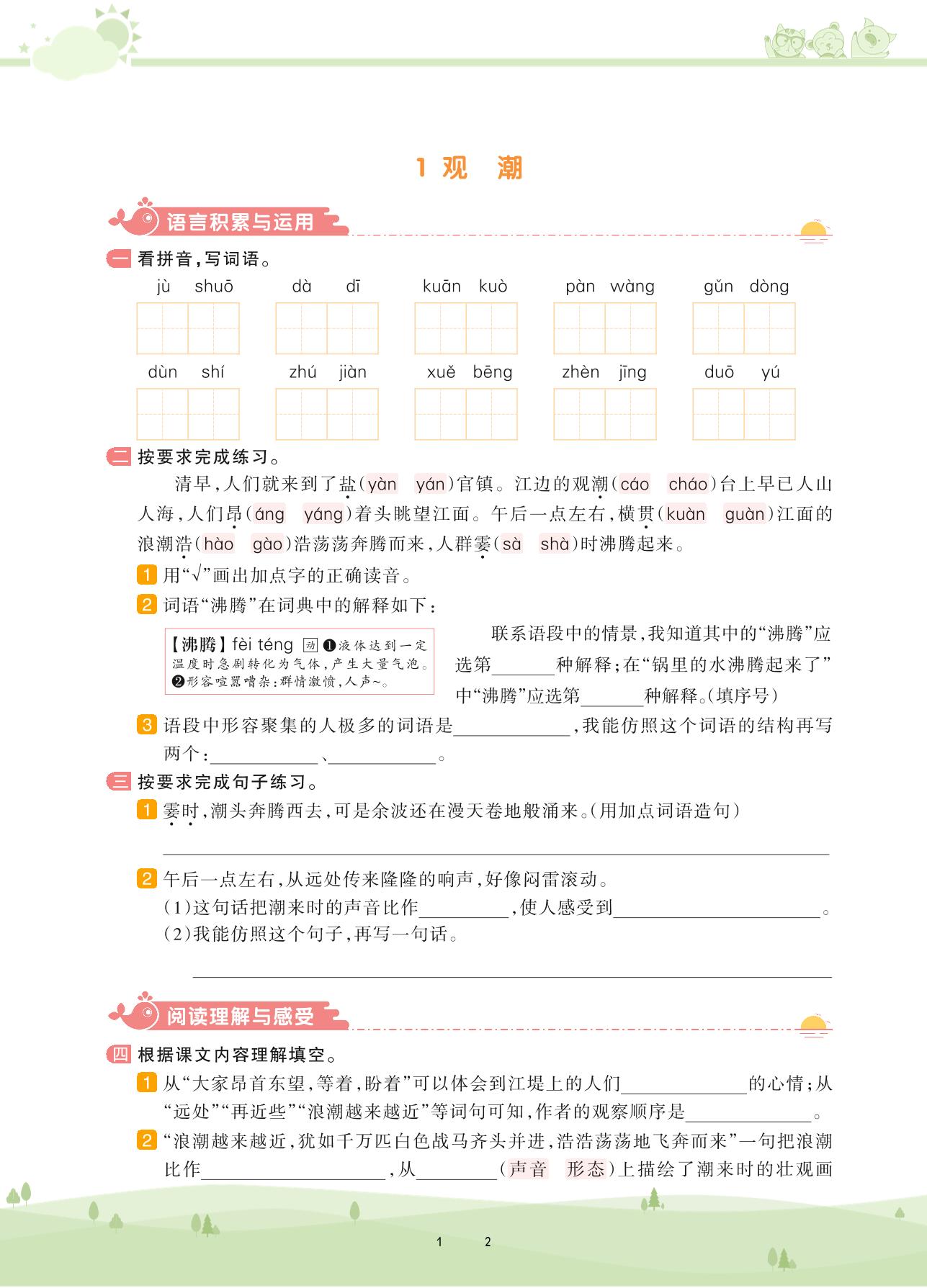 2020上册四年级语文人教版 第一单元——1 观潮