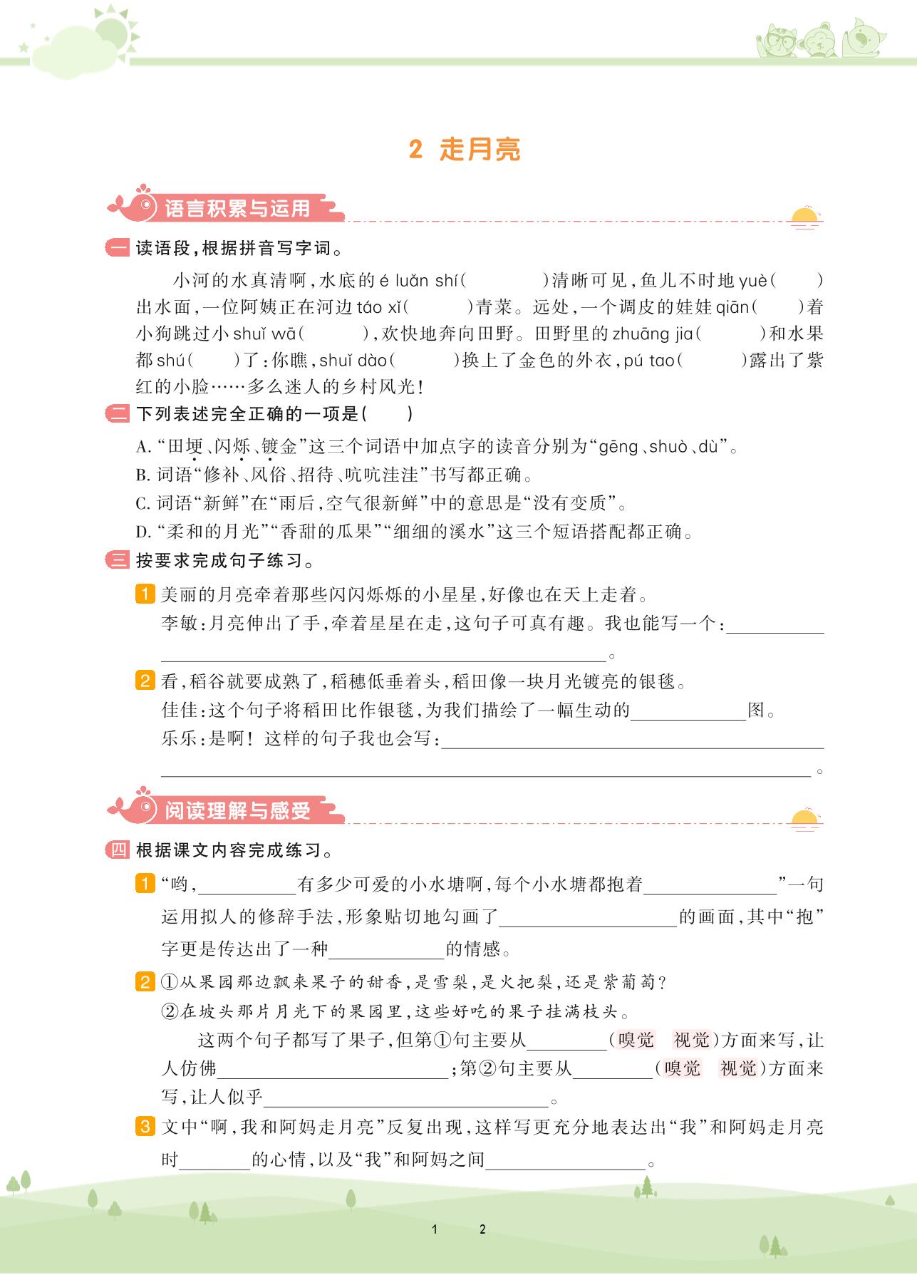 2020上册四年级语文人教版 第一单元——2 走月亮