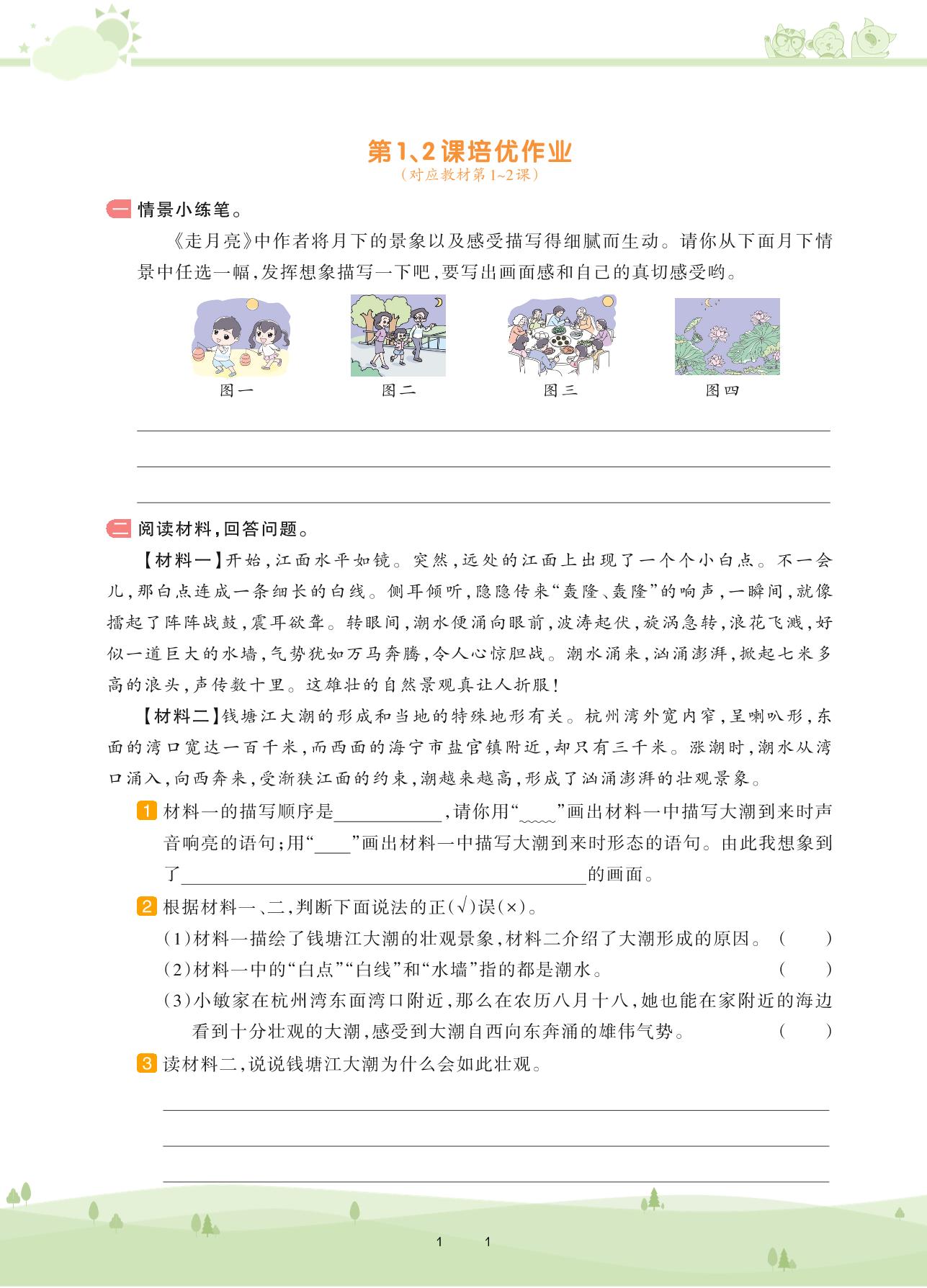 2020上册四年级语文人教版 第一单元——第1、2课培优作业