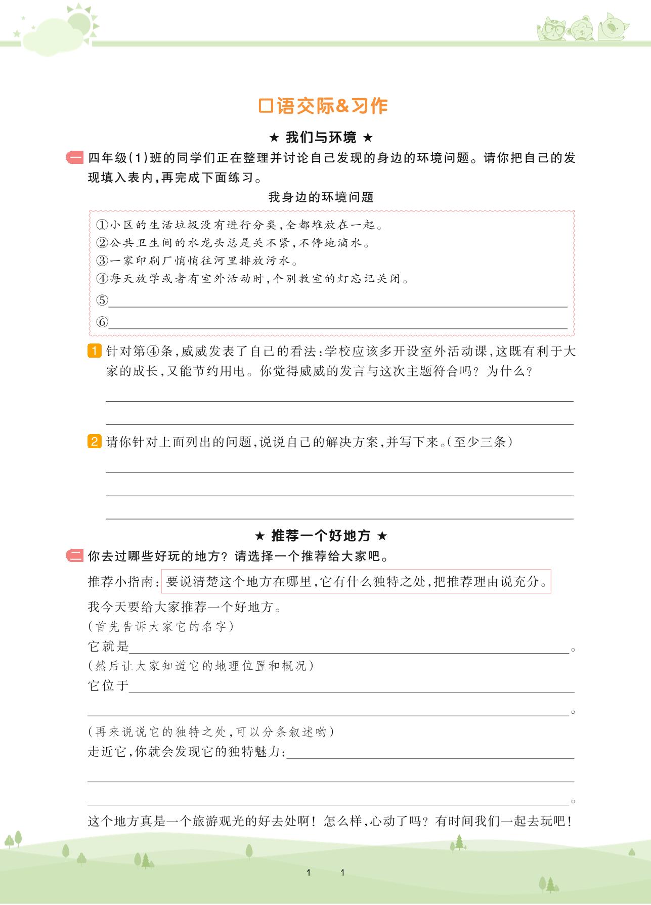 2020上册四年级语文人教版 第一单元——口语交际&习作