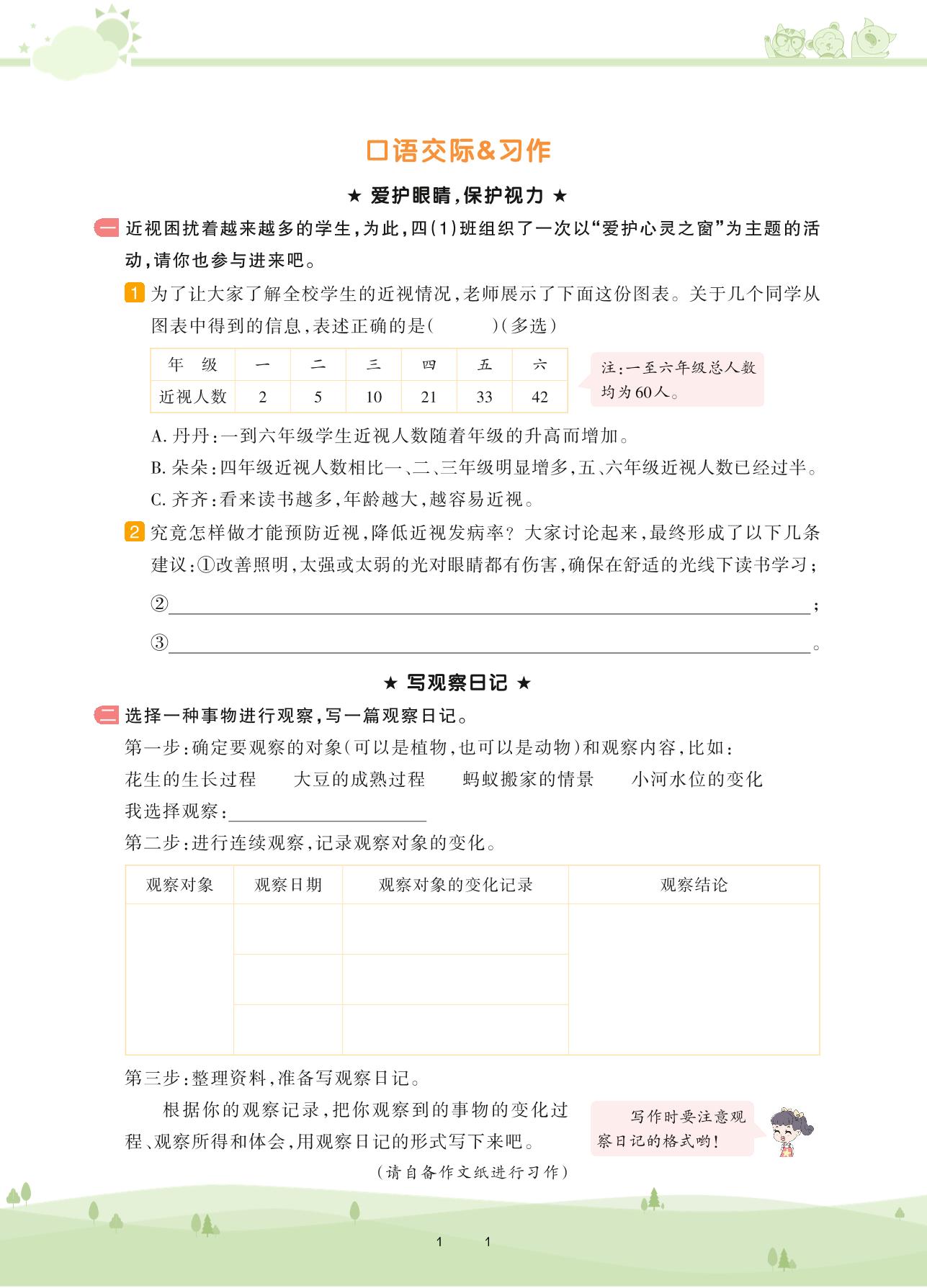 2020上册四年级语文人教版 第三单元——口语交际&习作