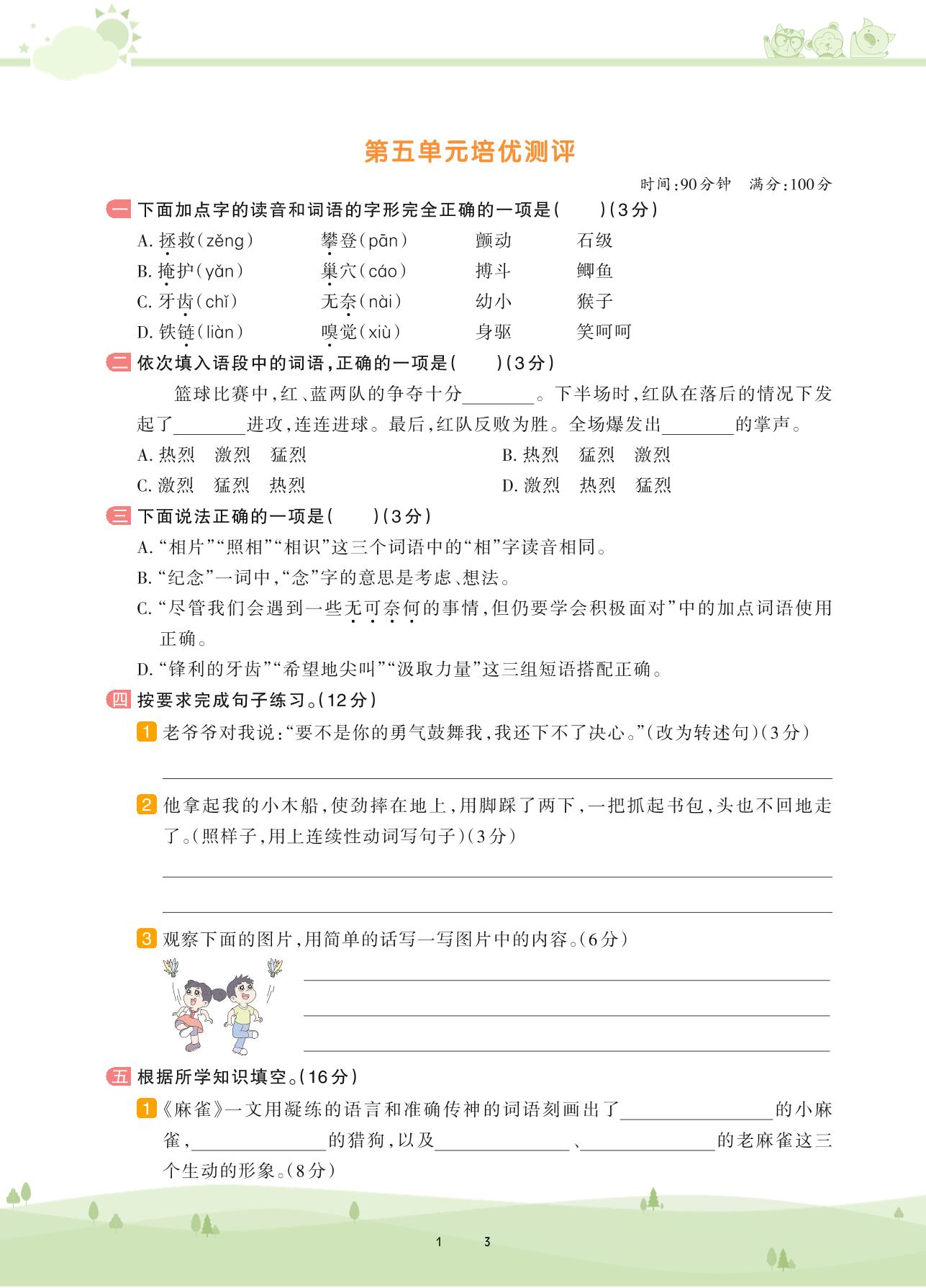四年级语文人教版上册单元卷