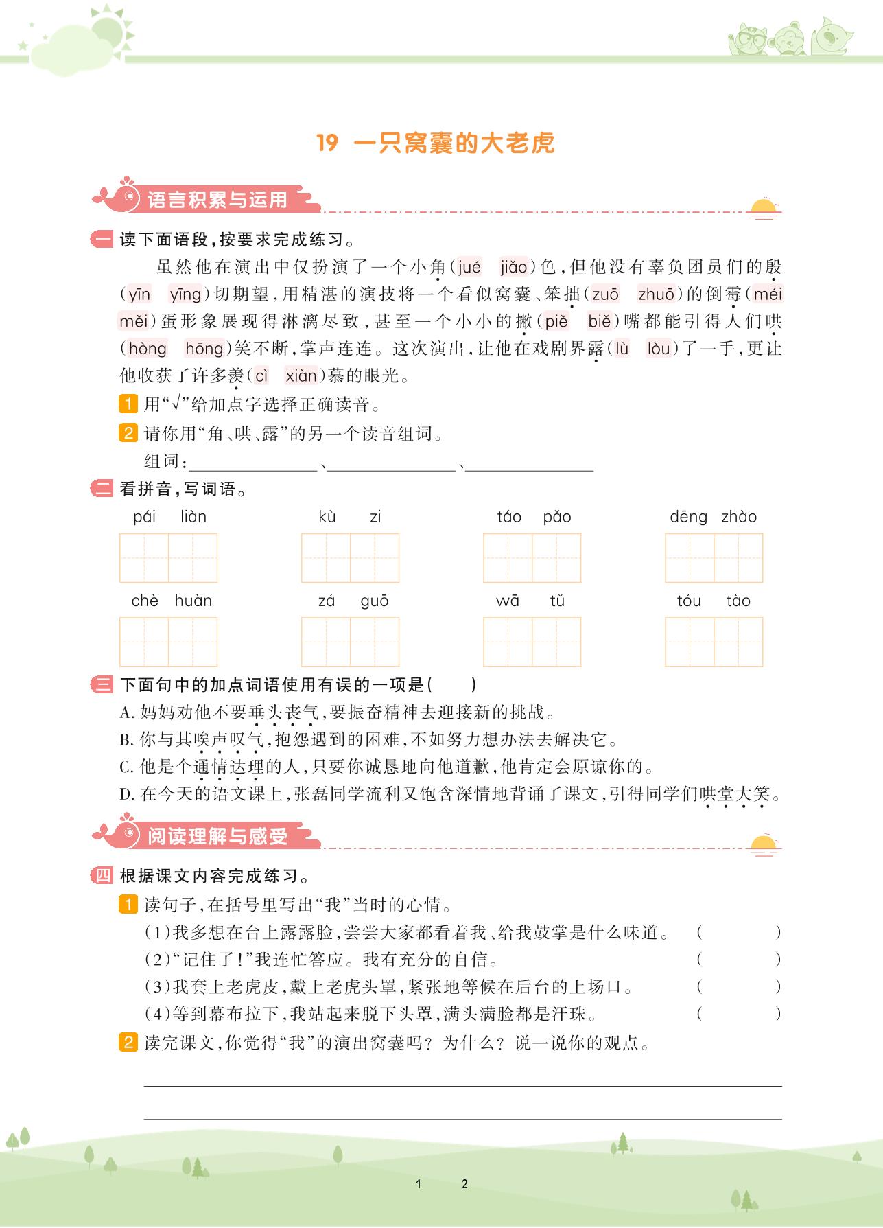 2020上册四年级语文人教版 第六单元——19 一只窝囊的大老虎