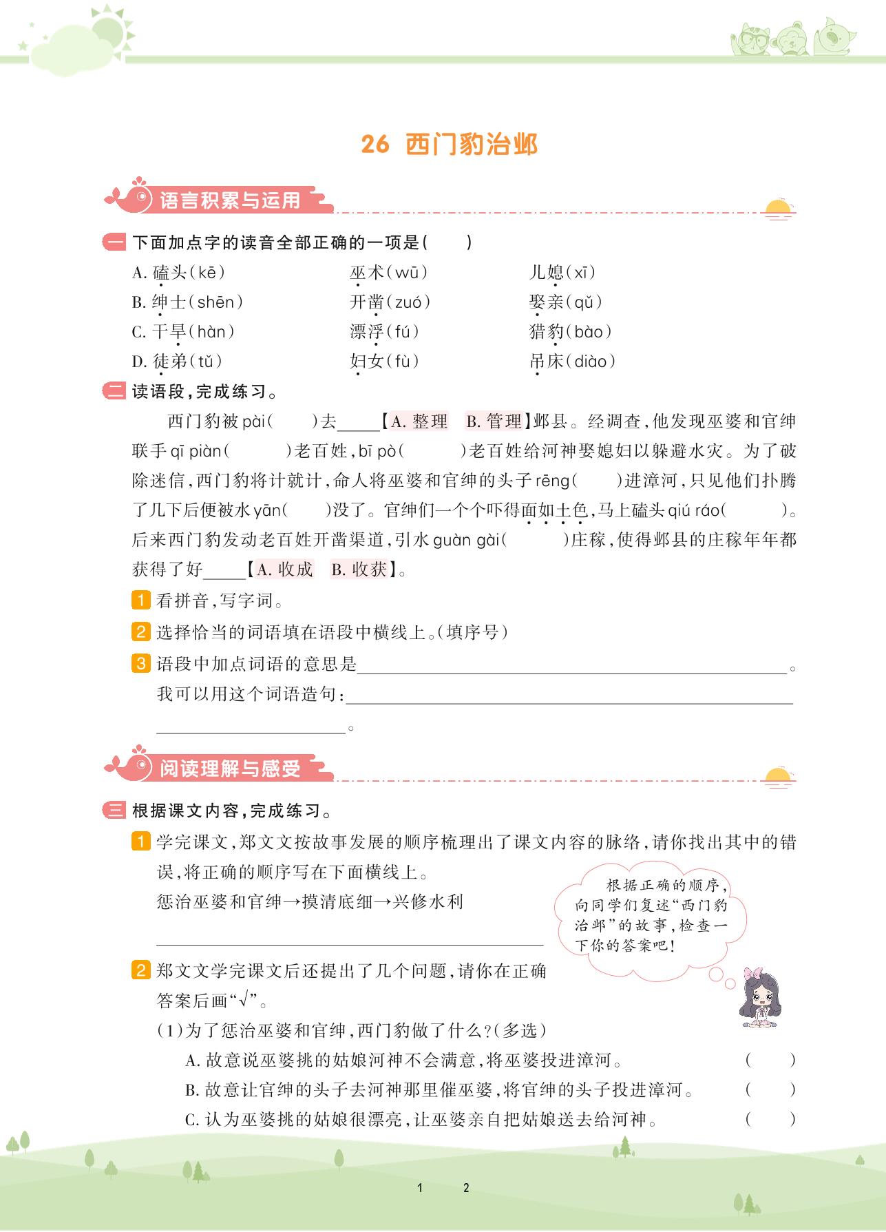 2020上册四年级语文人教版 第八单元——26 西门豹治邺