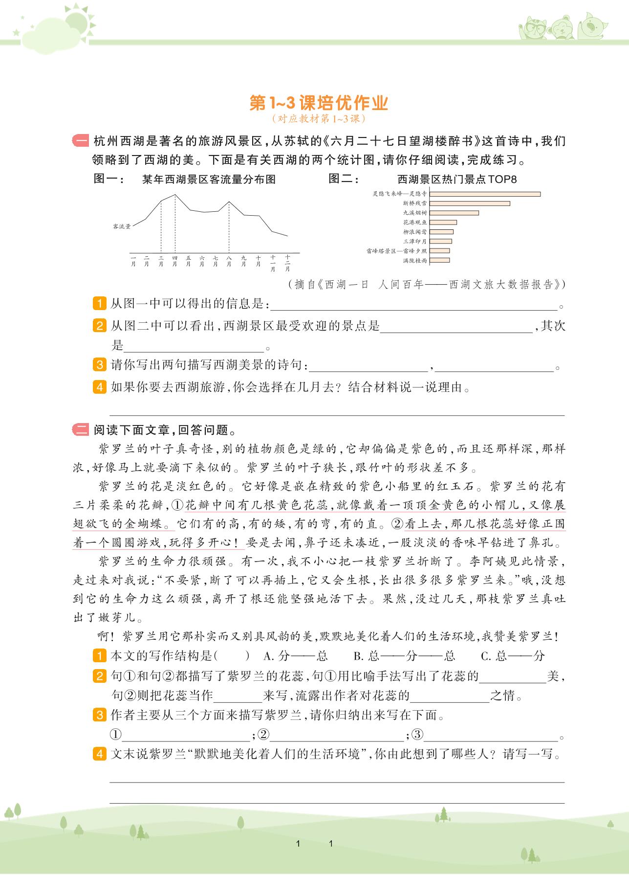 2020上册六年级语文人教版 第一单元——第1~3课培优作业